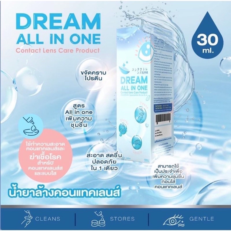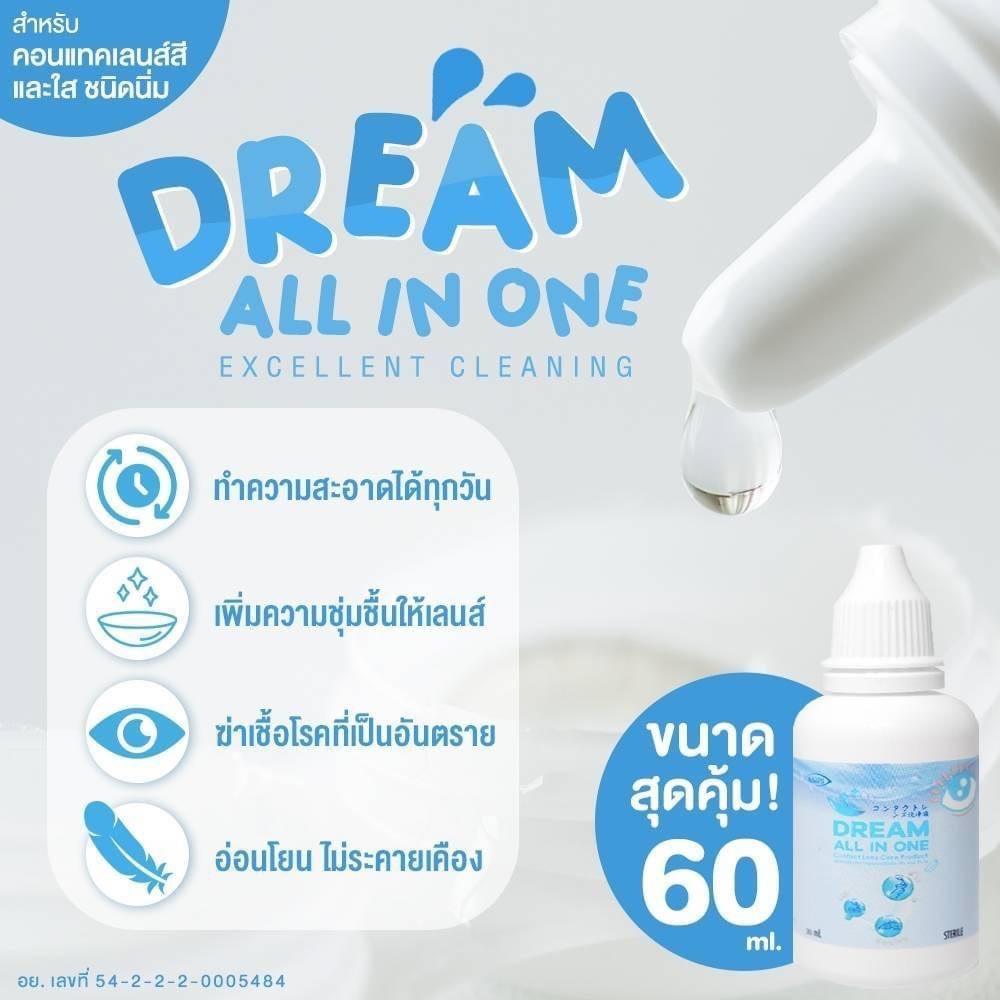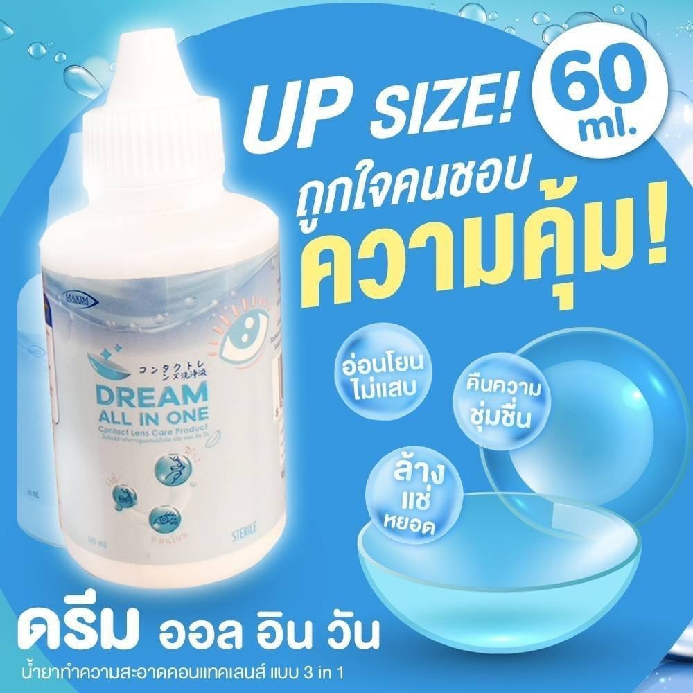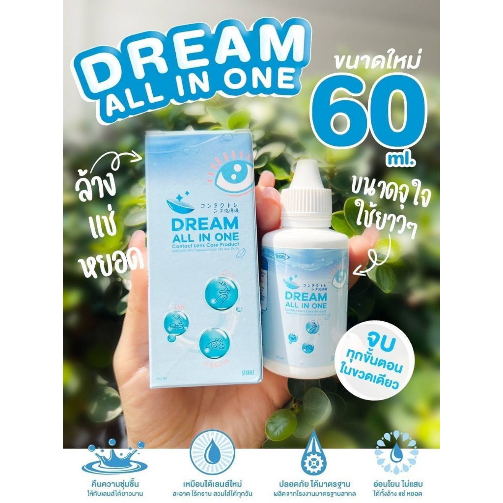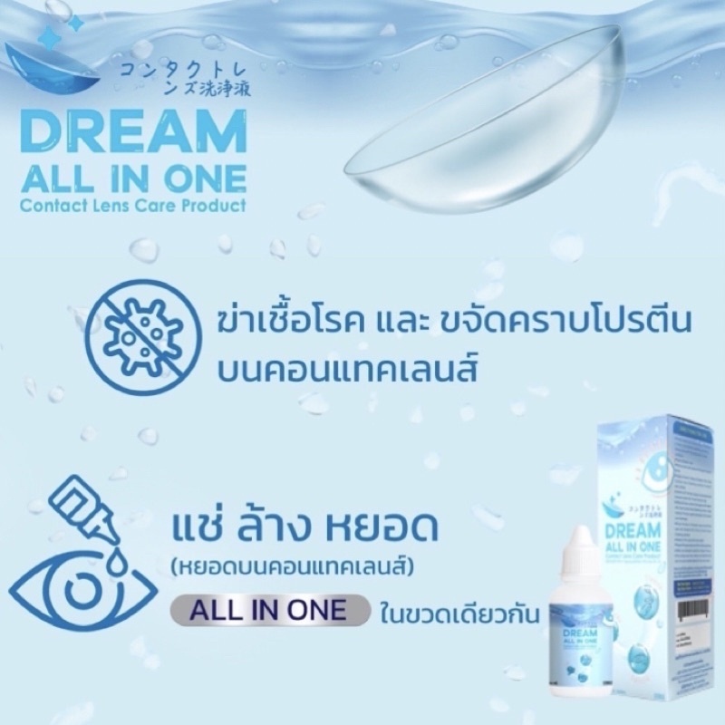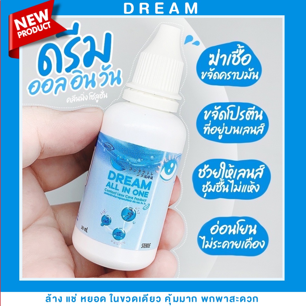 💦น้ำยา คอนแทคเลนส์ ล้าง แช่ หยอด💦 จบใน 1 ขวด Dream All In One 30 ML ☑️ 60 MLคุ้มมาก สะอาด☑️ ปลอดภัย ฆ่าเชื้อโรค