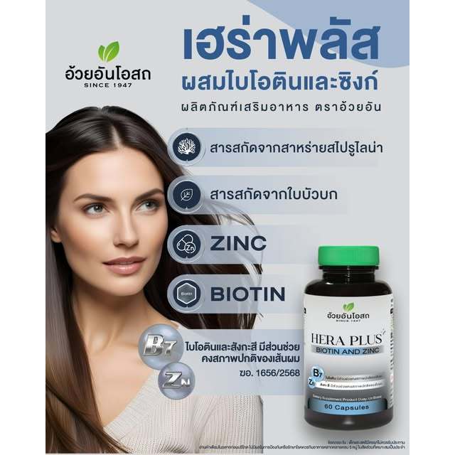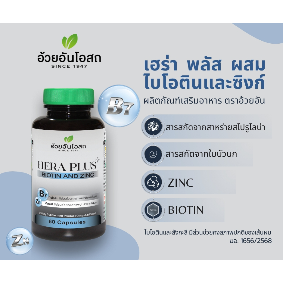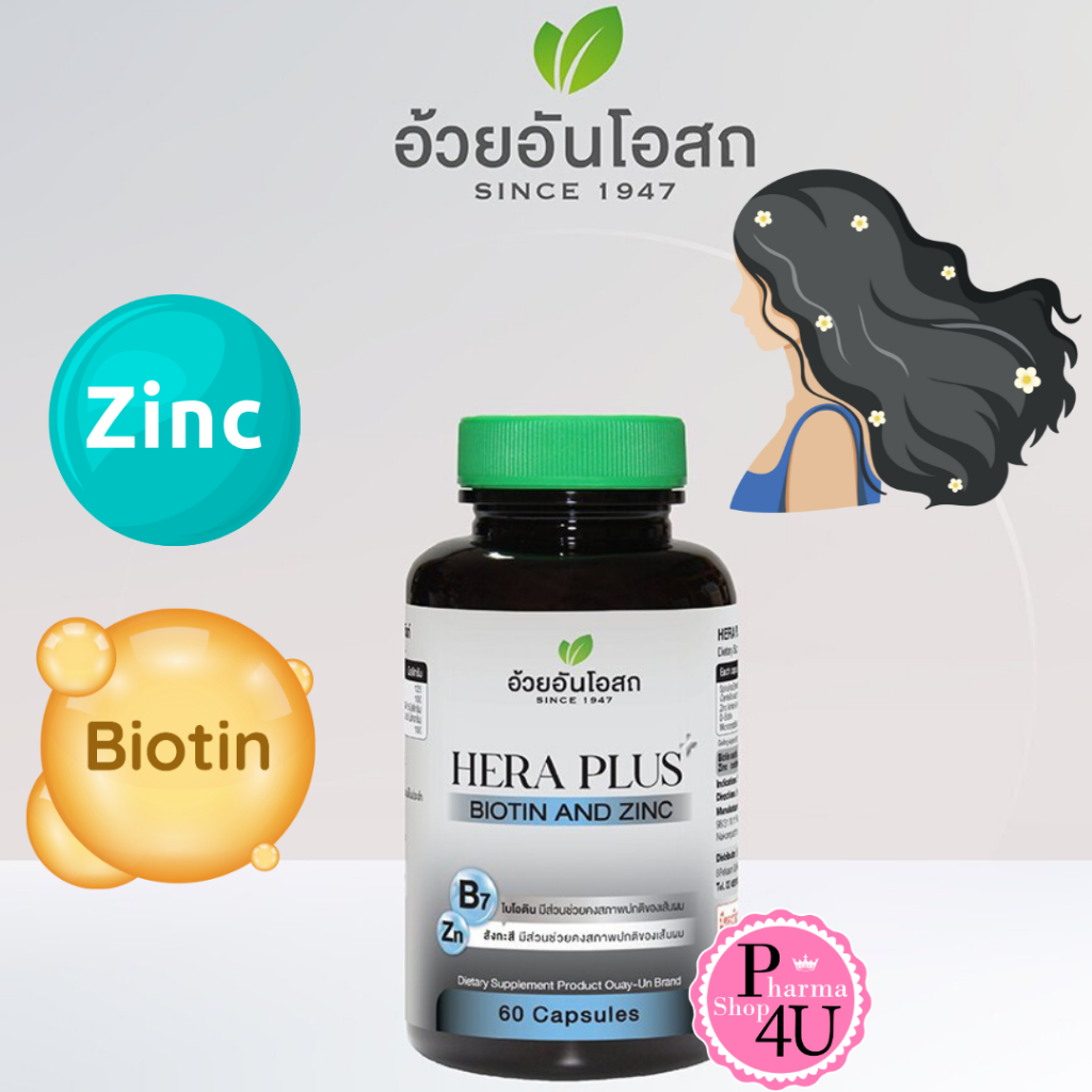 Ouay Un Hera Plus Biotin & Zinc อ้วยอันโอสถ เฮร่า พลัส ไบโอติน ซิงค์ 60 แคปซูล #12874