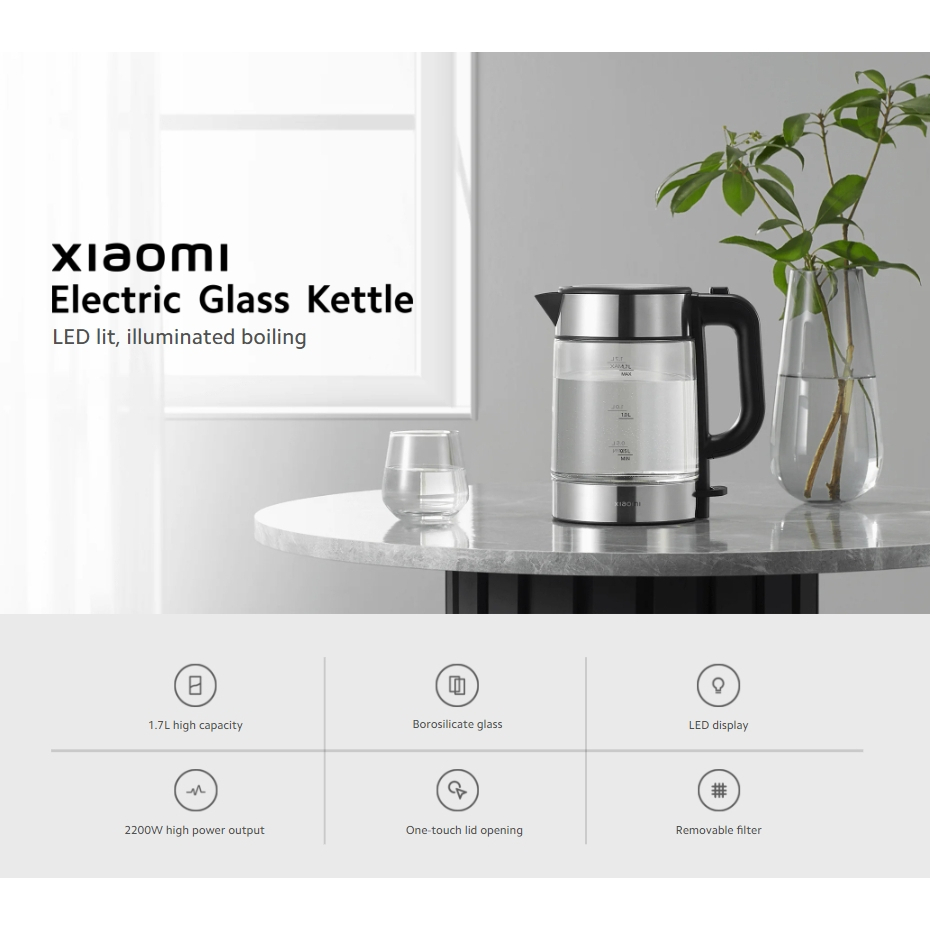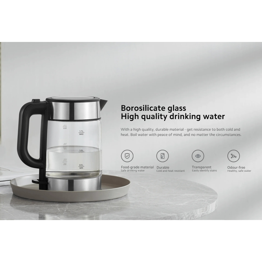 Xiaomi Electric Glass Kettle กาต้มน้ำไฟฟ้า กาต้มน้ำคุณภาพสูง แก้วบอโรซิลิเกต จอแสดงผลไฟ LED