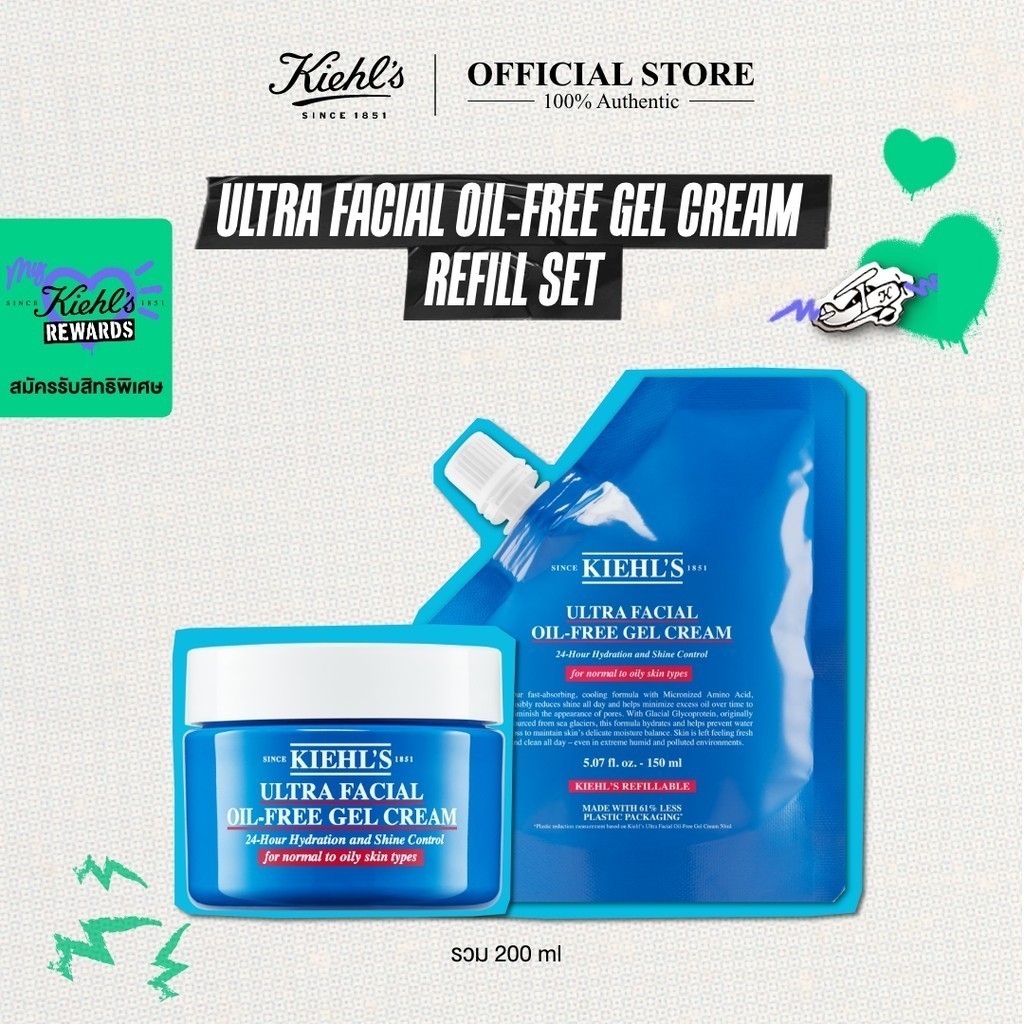 [REFILL SET] KIEHL'S ULTRA FACIAL OIL-FREE GEL CREAM 50ML & ULTRA FACIAL OIL-FREE GEL REFILL POUCH 150ML