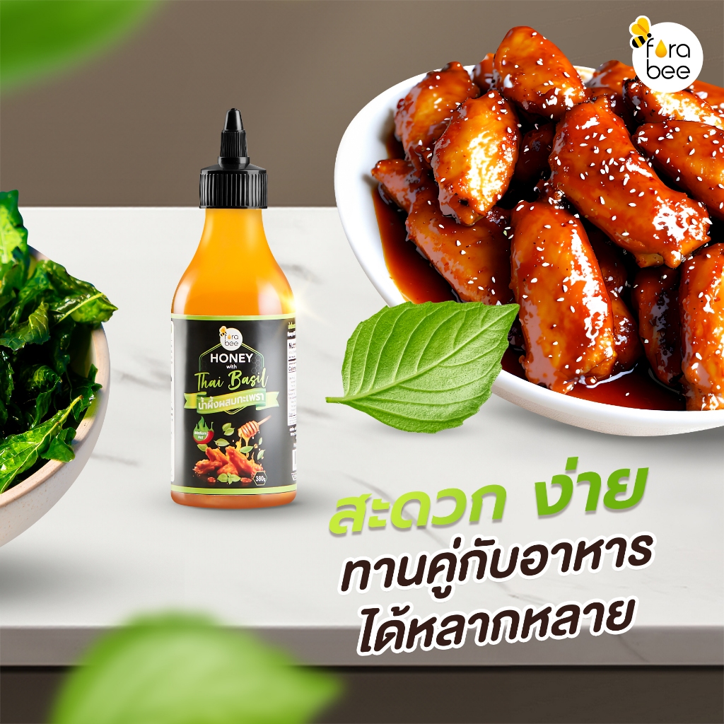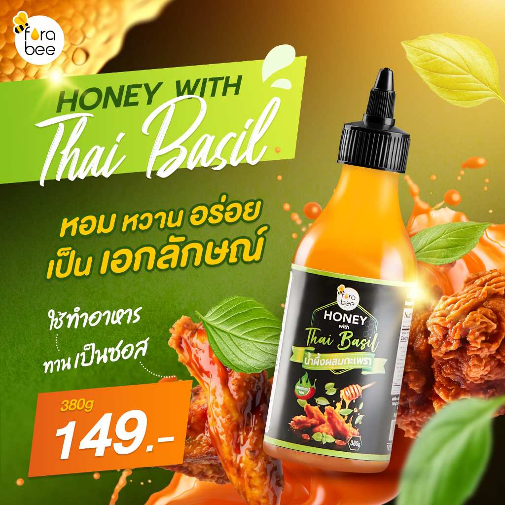 Fora Bee ฟอร่าบี น้ำผึ้งผสมกะเพรา Honey with Thai Basil (380g)