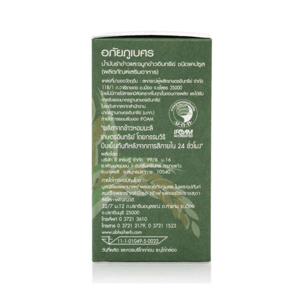 อภัยภูเบศร น้ำมันรำข้าวและจมูกข้าว เกษตรอินทรีย์ ORGANIC สกัดเย็น 60 แคปซูล [PC]