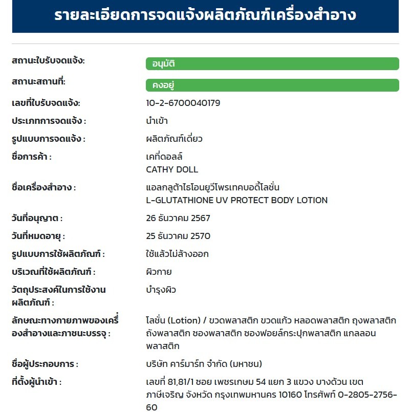 Cathy Doll L-Glutathione Magic Cream SPF 50 PA+++ ครีมกันแดดละอองน้ำ 60ml