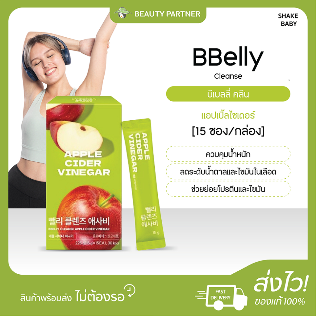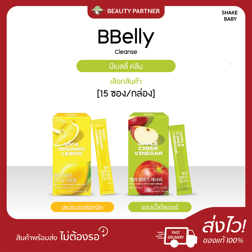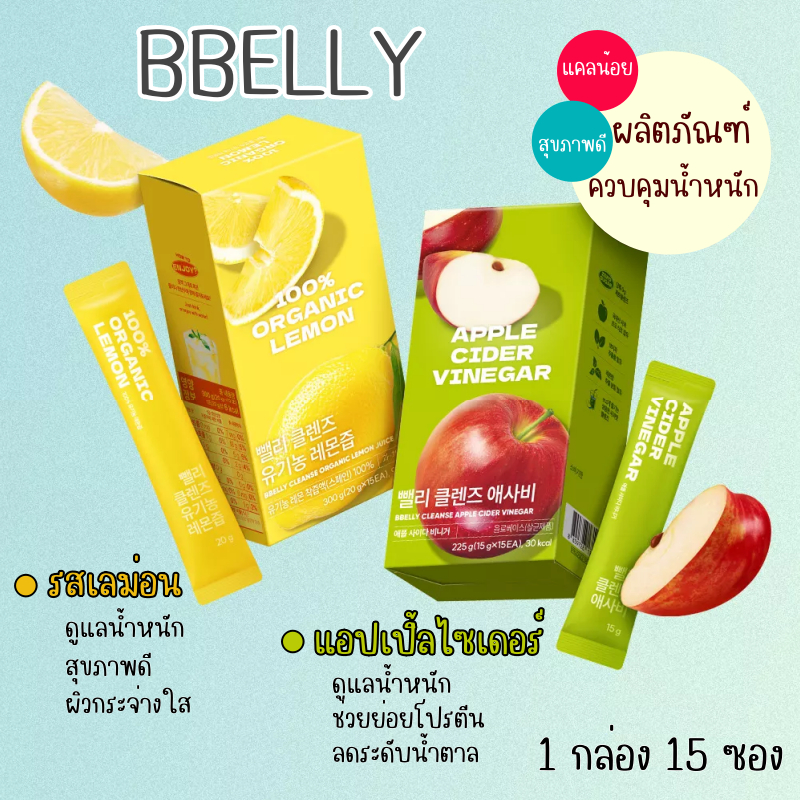 BBelly Cleanse Organic Lemon Juice / Apple Cider Vinegar [1 กล่อง] [15 ซอง] บ ีเบลลี่ คลีน เลม่อน / แอปเปิ้ลไซเดอร์