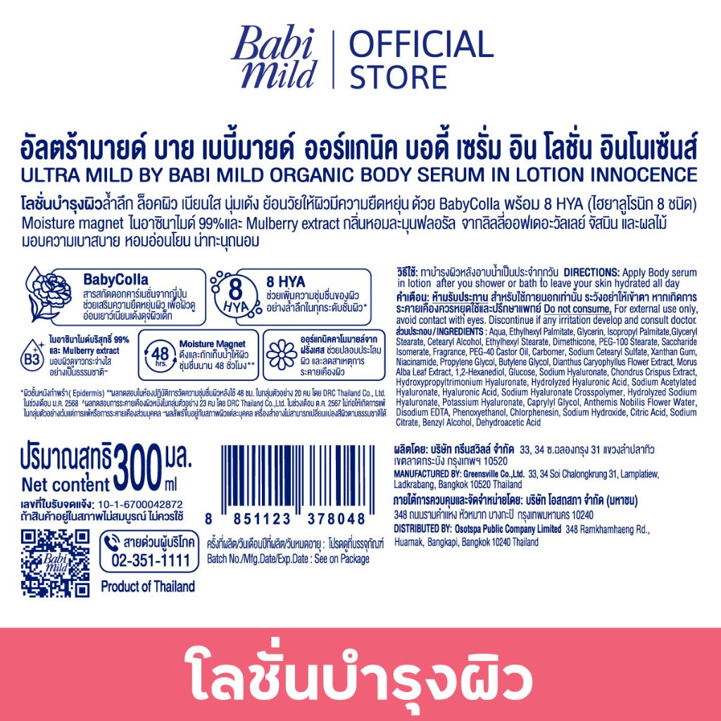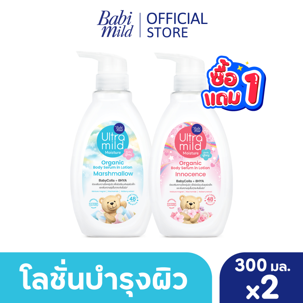 [1แถม1] เบบี้มายด์ อัลตร้ามายด์ ออร์แกนิค โลชั่น 300มล / Babi Mild Ultra Mild Serum in Lotion 300ml