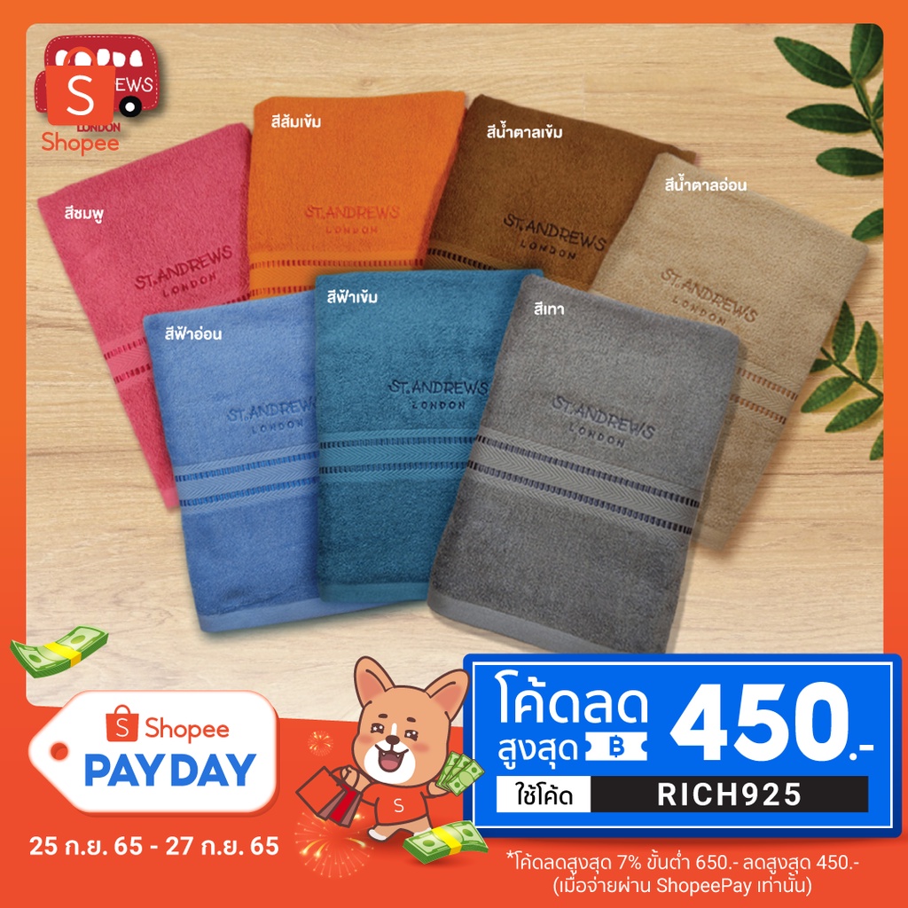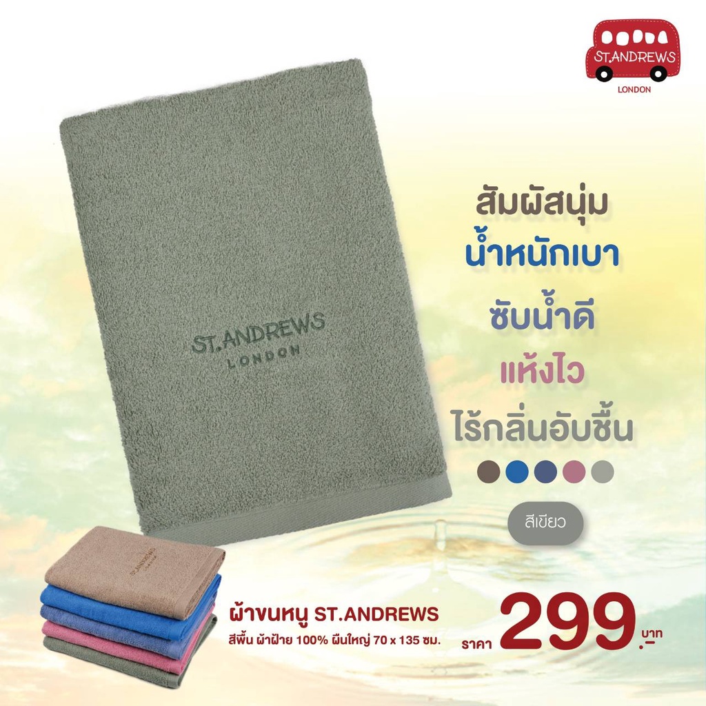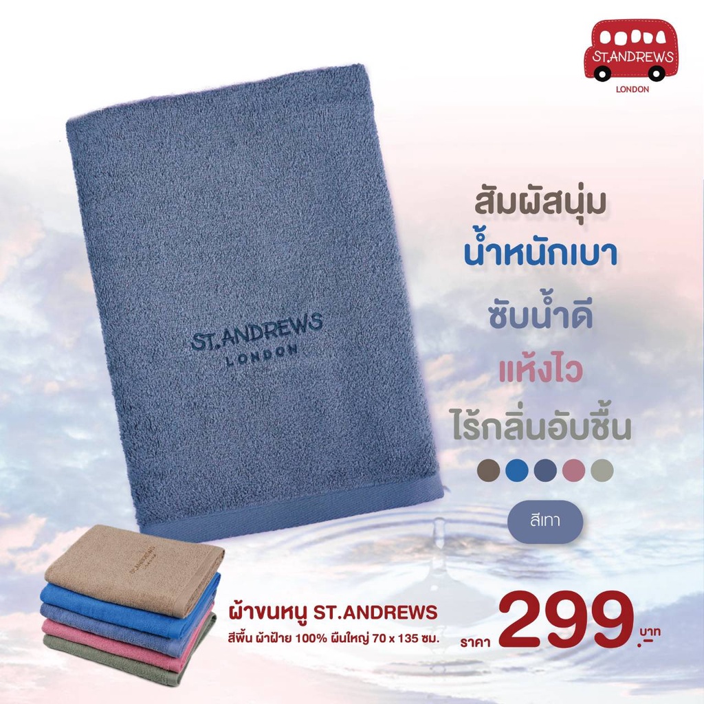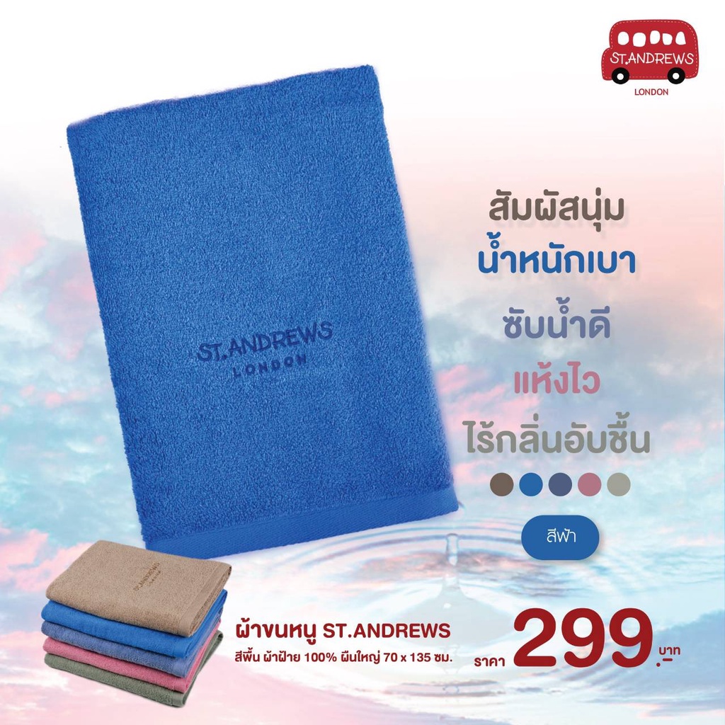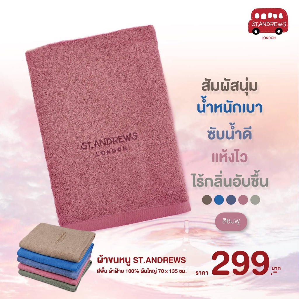 โค้ต RICH925 ลดเพิ่มSt.Andrews ผ้าขนหนู ผ้าเช็ดตัว ใหม่สีพาสเทล คุณภาพส่งออกญี่ปุ่น ผืนใหญ่ ขนาด 70x135 ซม มี 12 สีให้