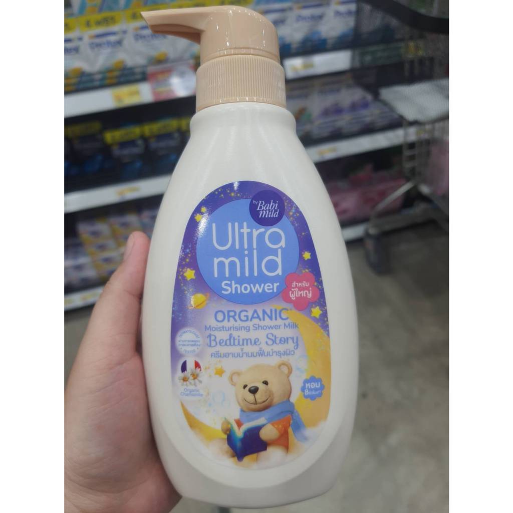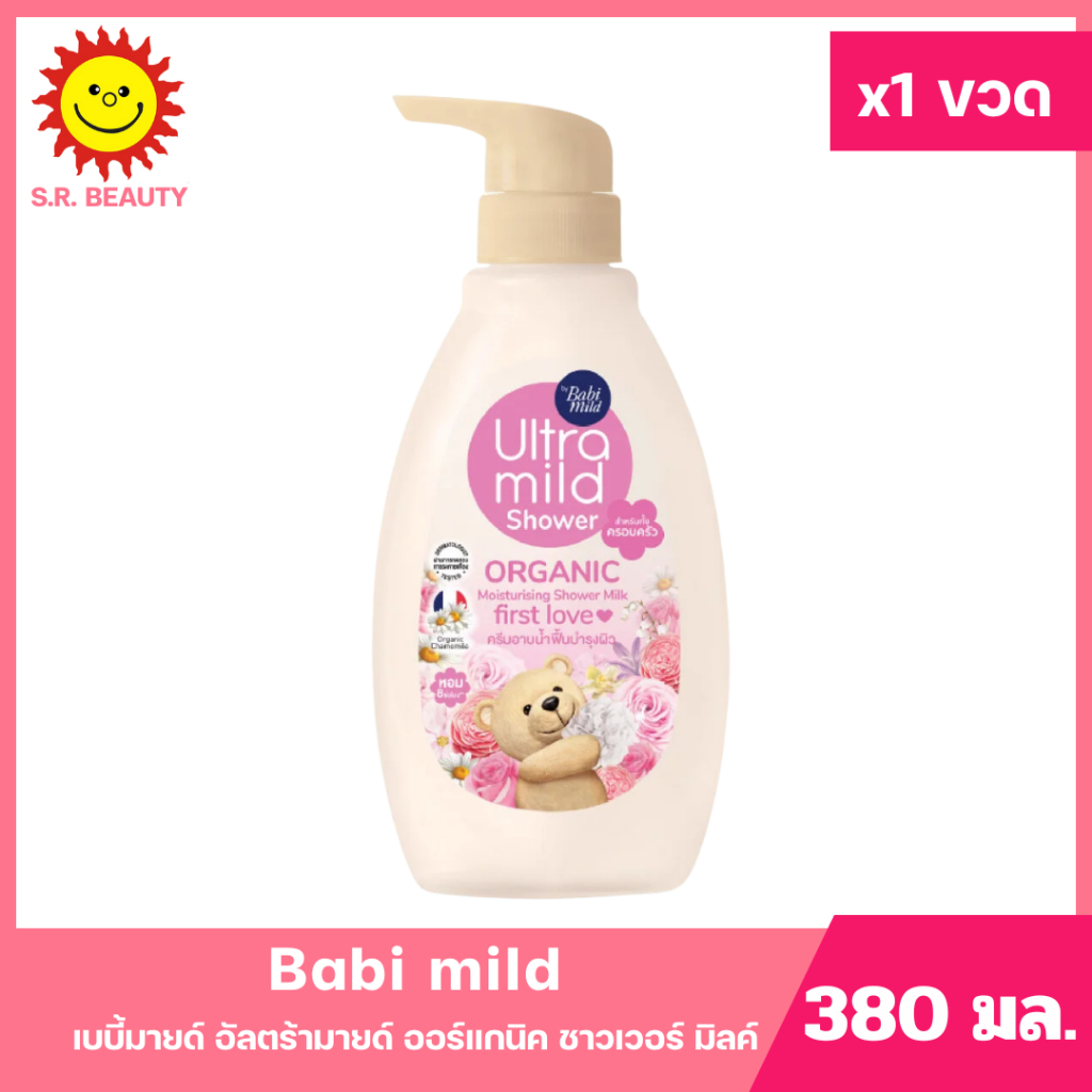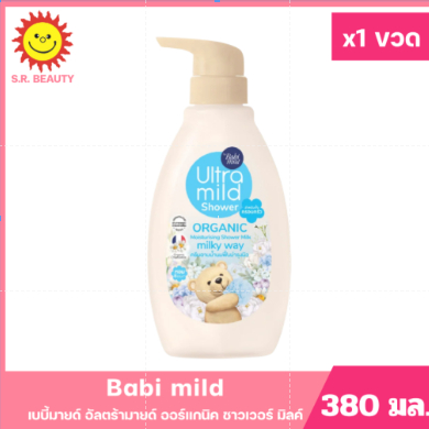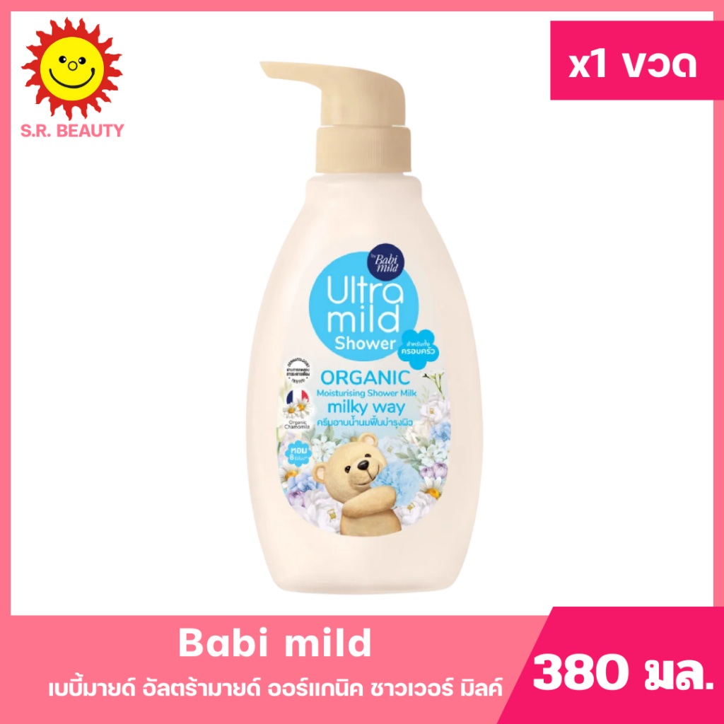 [ 1ขวด ] Babi mild เบบี้มายด์ อัลตร้ามายด์ ออร์แกนิค ชาวเวอร์มิลค์ ครีมอาบน้ำนม ขนาด 380 มล. (1ขวด) มี 4 สูตร