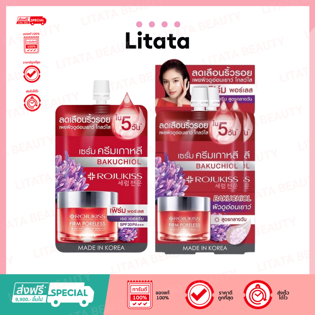 ครีมกลางวัน ลดริ้วรอย โรจูคิส เฟิร์ม พอร์เลส เรด เดย์ ครีม Rojukiss Firm Poreless Red Day cream 6มล.