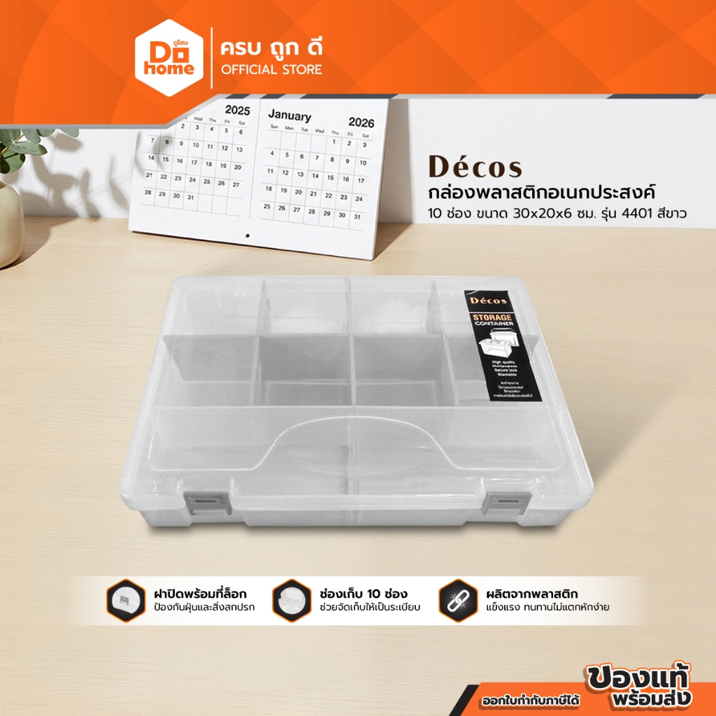 DECOS กล่องพลาสติกอเนกประสงค์ 10 ช่อง ขนาด 30x20x6 ซม. รุ่น 4401 สีขาว |BAI|