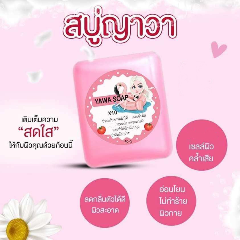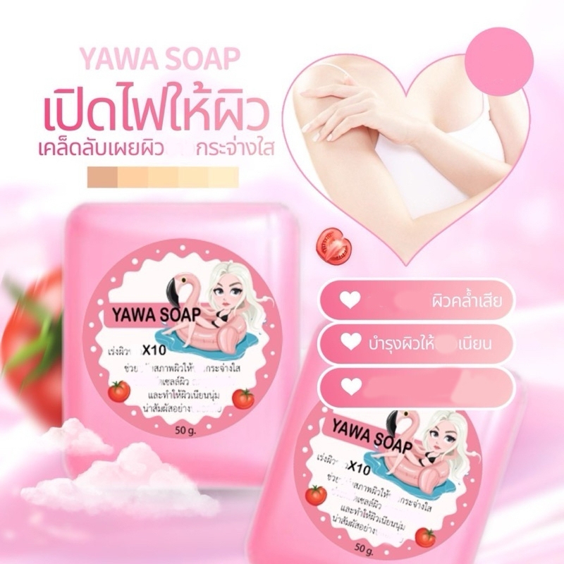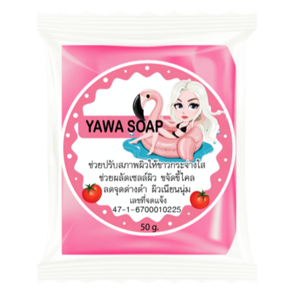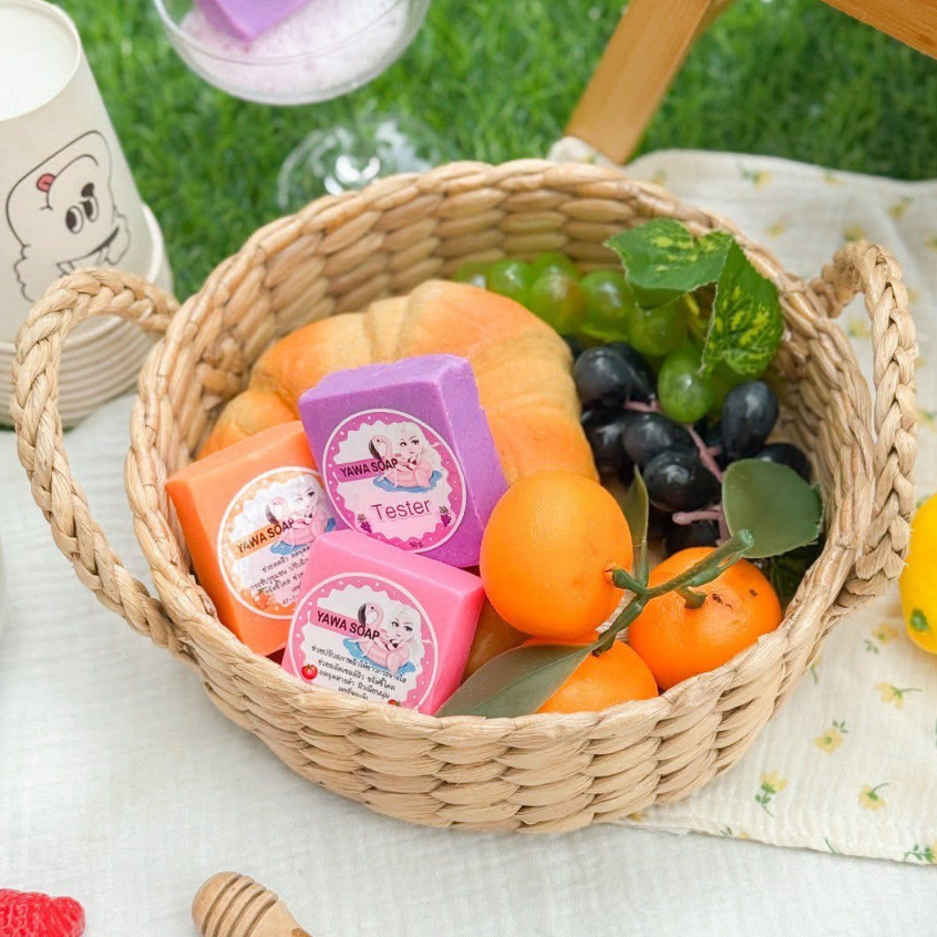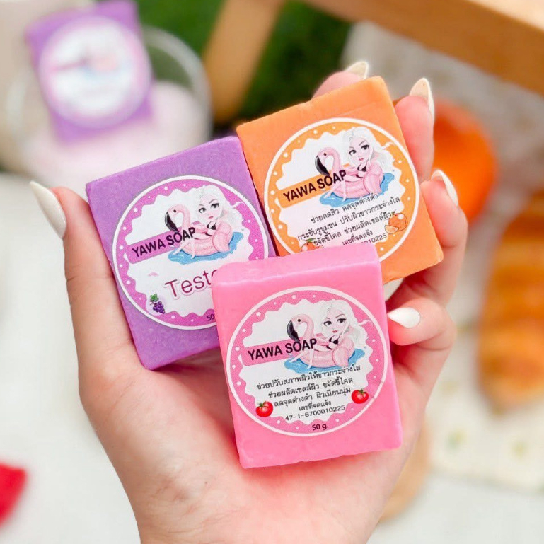 สบู่ กลูต้า ญาวา YAWA SOAP มะเขือเทศ ก้อน ชมพู/ส้ม/ม่วง ขนาด 50 กรัม.