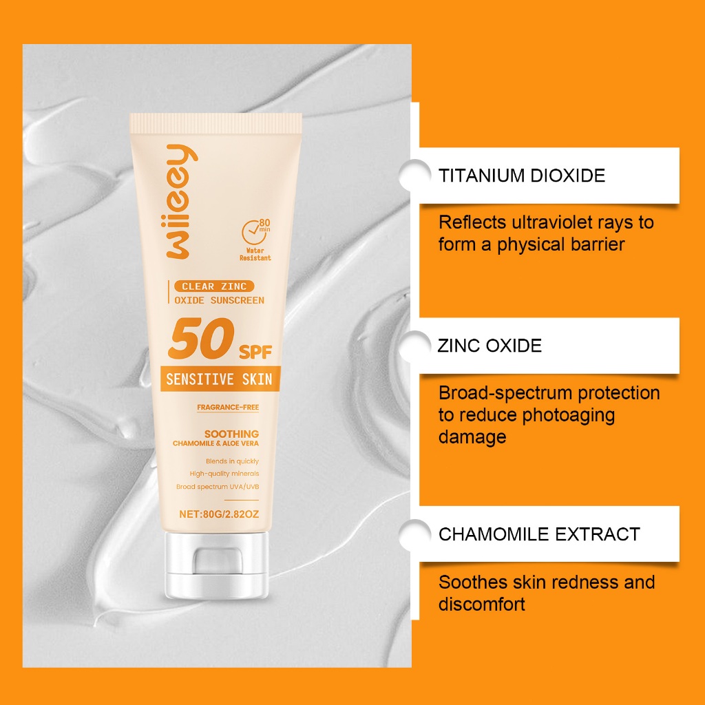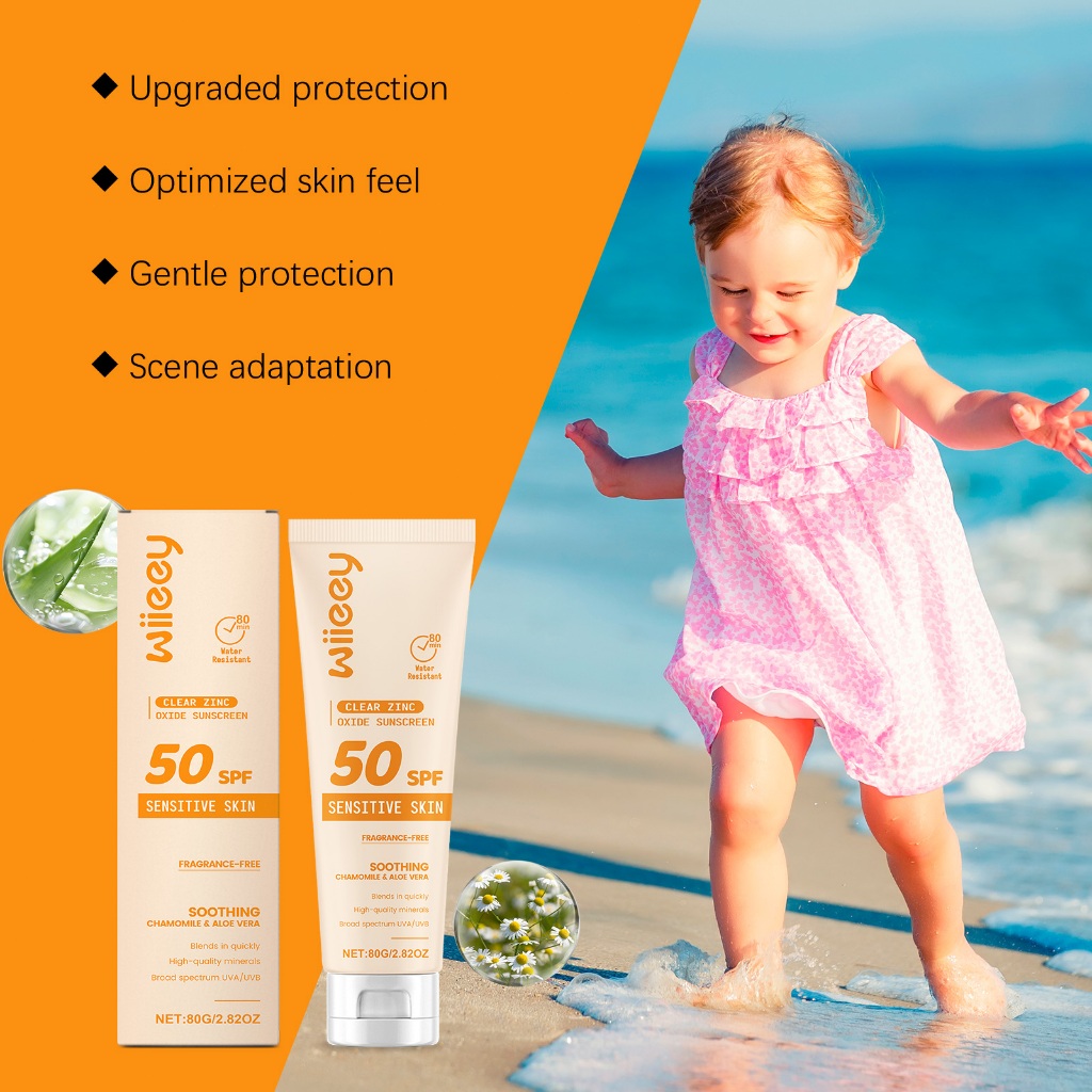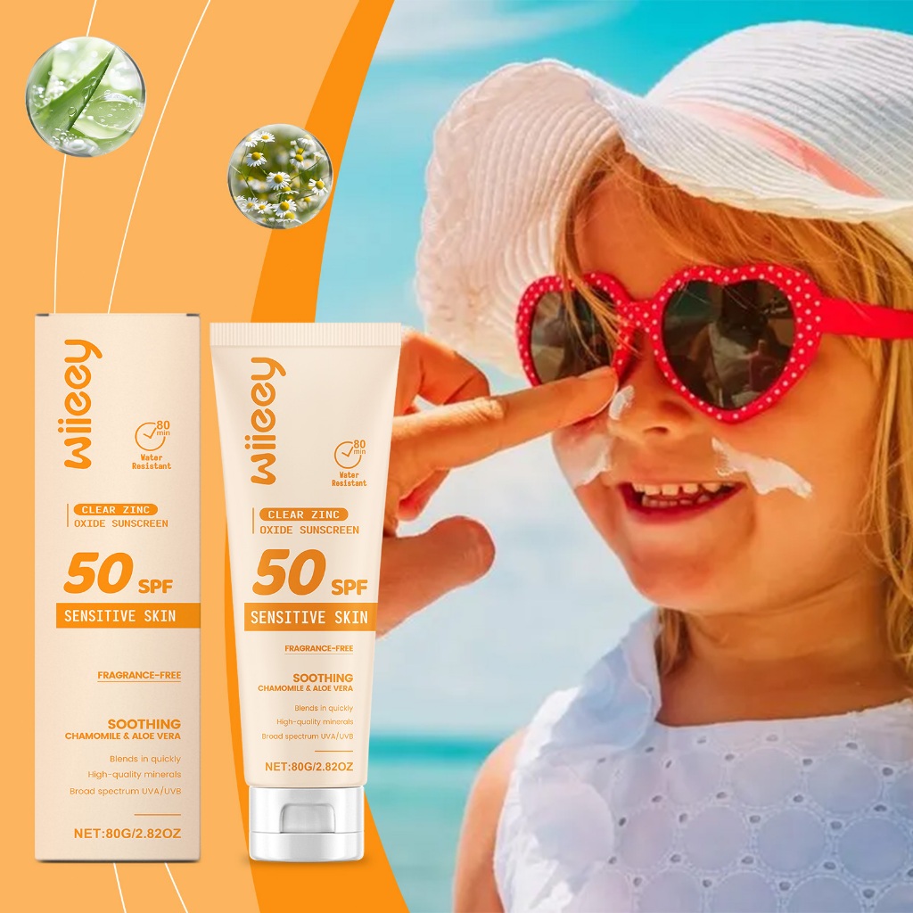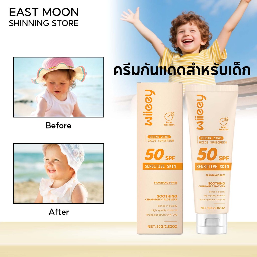 Wiieey ครีมกันแดดสำหรับเด็ก SPF50+ สูตรอ่อนโยน กันน้ำ และกันเหงื่อ ปราศจากน้ำหอมและพาราเบน