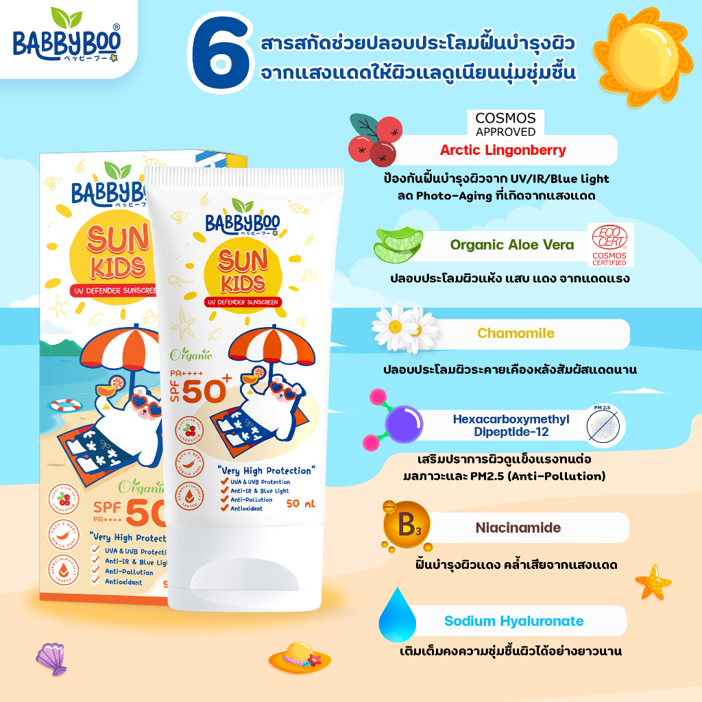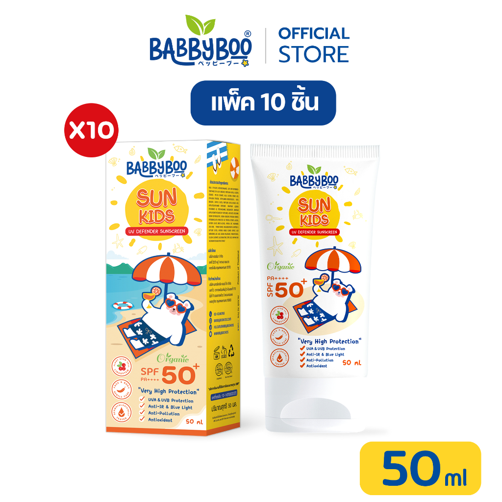 [Set 10 ชิ้น] กันแดดสำหรับเด็ก BABBYBOO ปกป้องผิวจากรังสี UVA/UVB แสงสีฟ้า SPF 50+ PA++++ทาหน้าทาตัว
