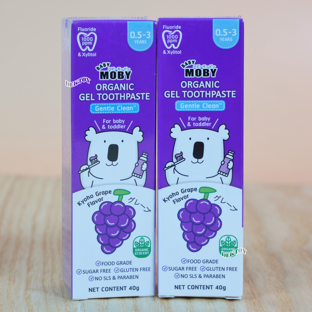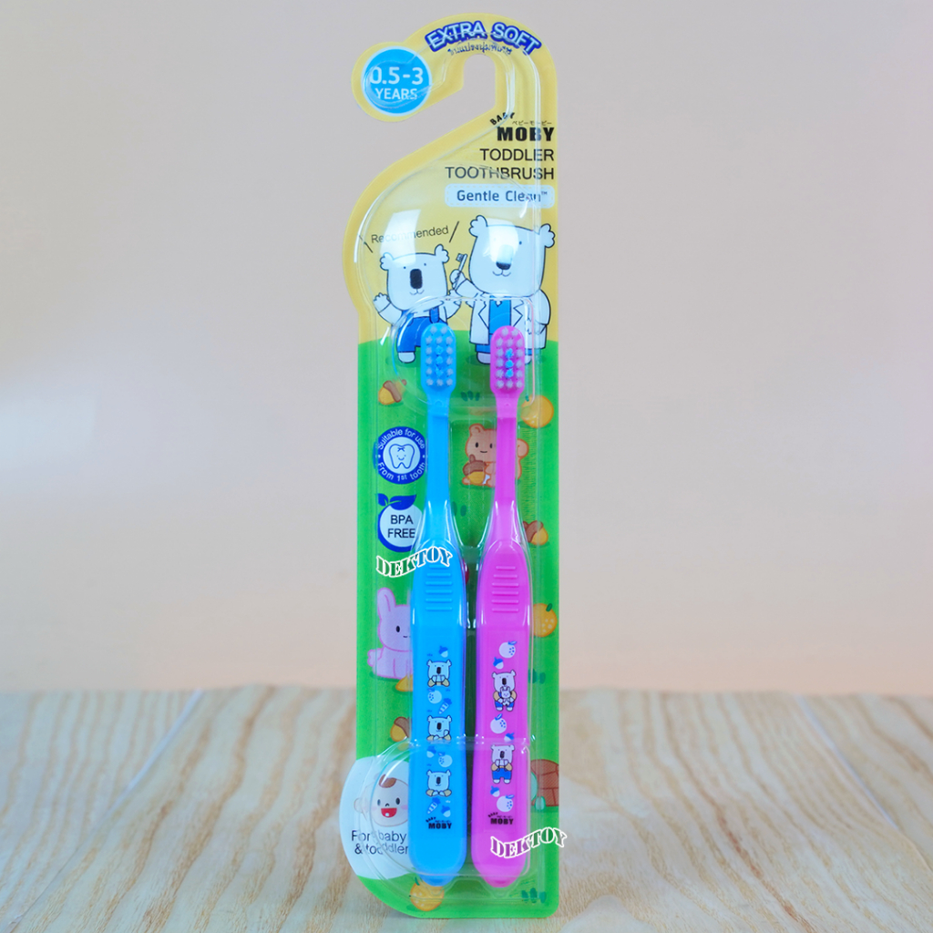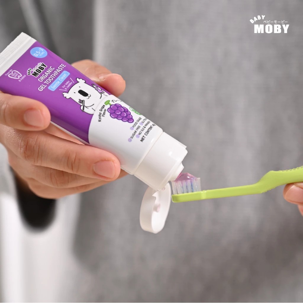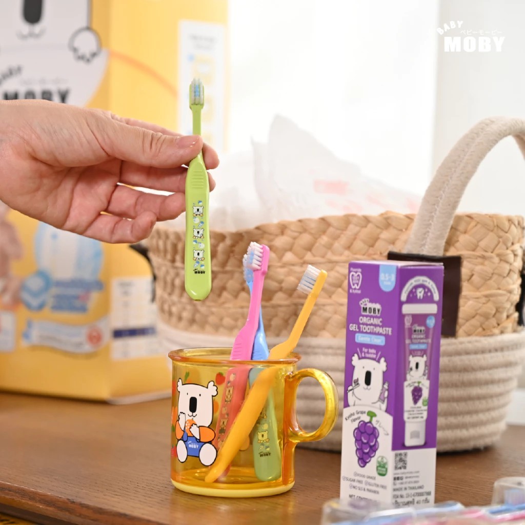Baby Moby ชุดสุดคุ้ม แปรงสีฟัน คู่ ยาสีฟัน กลิ่นองุ่น สำหรับเด็ก 5 เดือน ถึง 36 เดือน