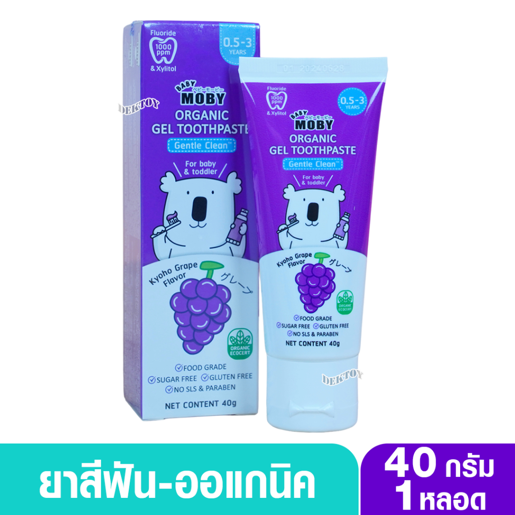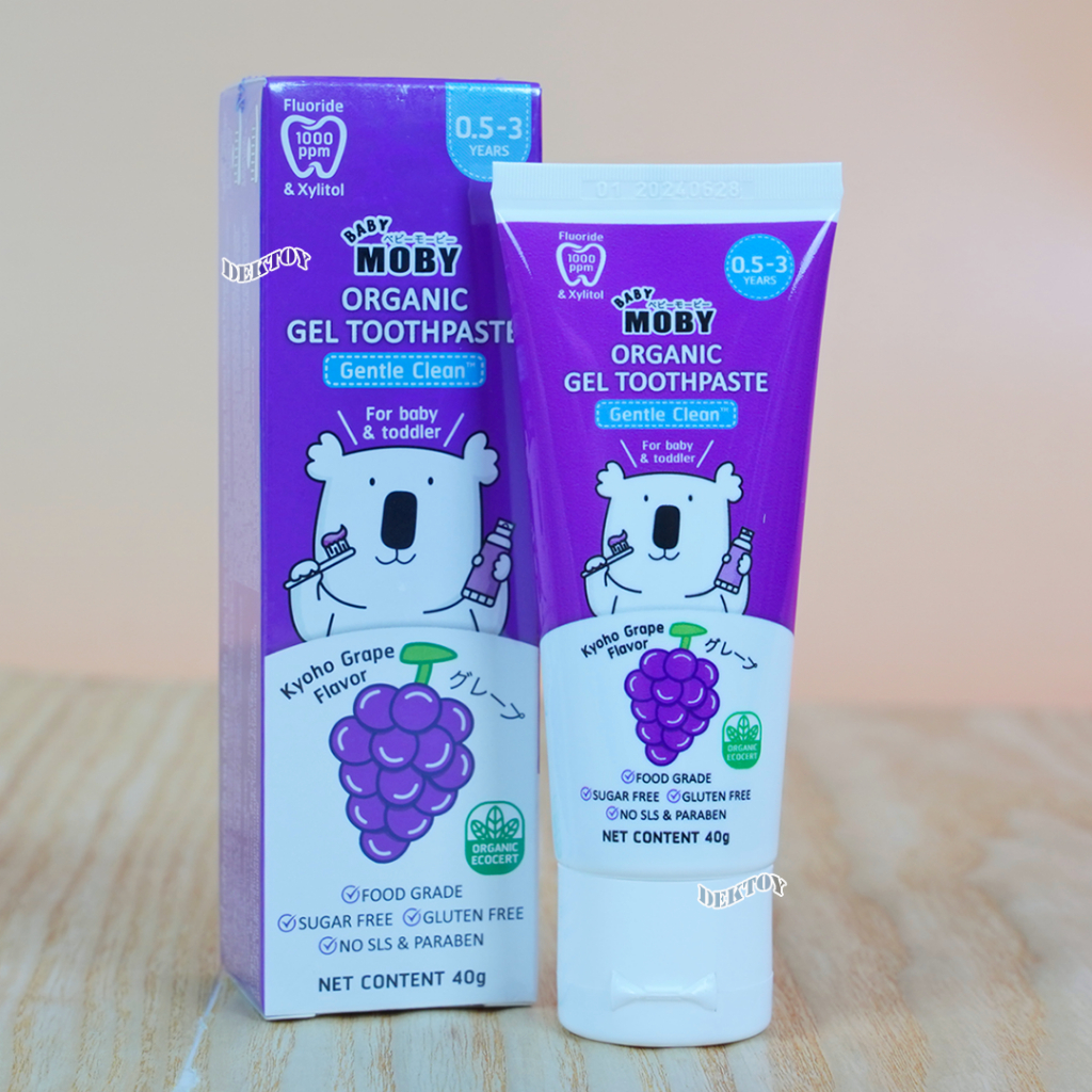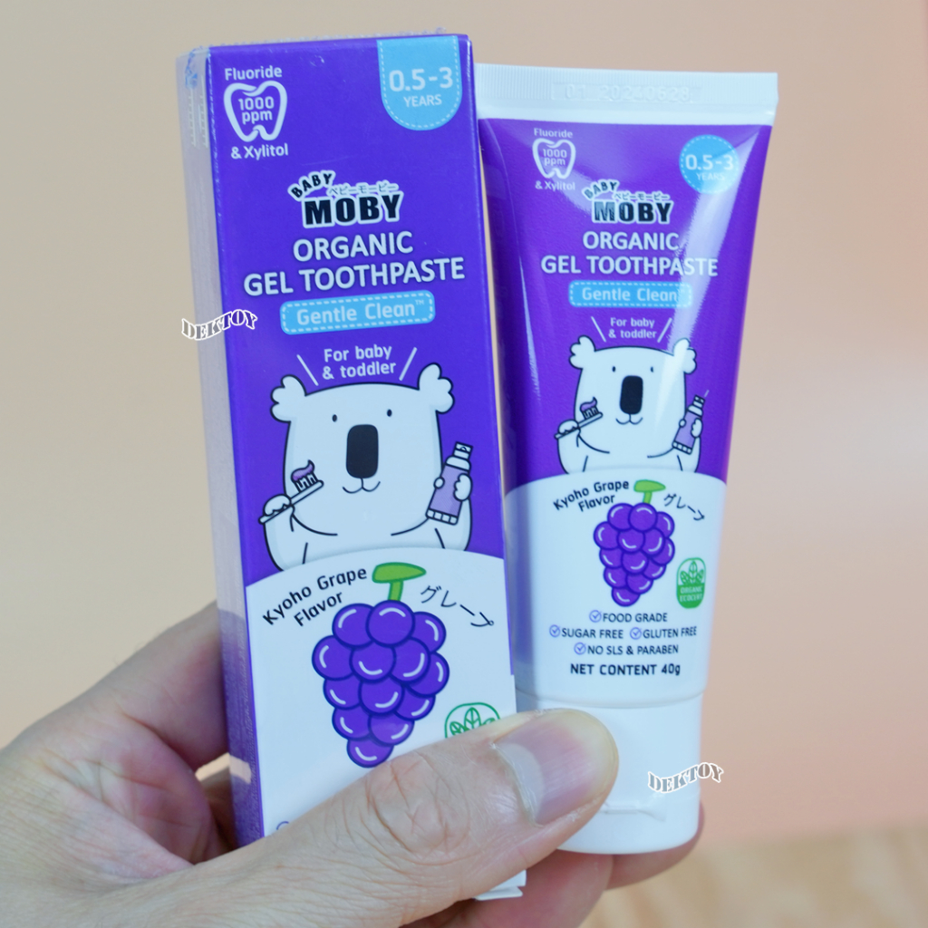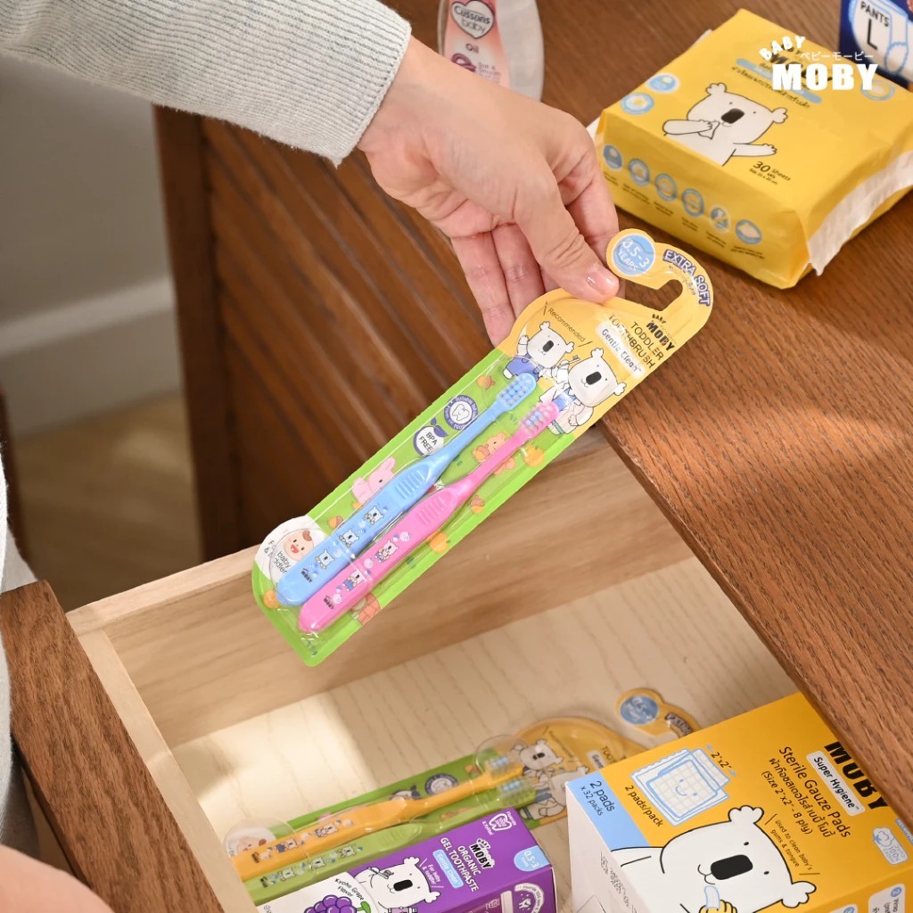 Baby Moby ชุดสุดคุ้ม แปรงสีฟัน คู่ ยาสีฟัน กลิ่นองุ่น สำหรับเด็ก 5 เดือน ถึง 36 เดือน