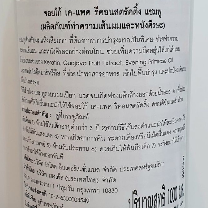 แถมหัวปั๊ม Joico K-Pak Reconstructing Shampoo To Repair Damaged Hair 1000ml. จอยโก้ เคแพค แชมพู Joico kpak