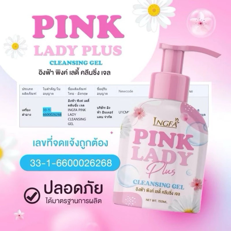 อิงฟ้าพิ้งค์เลดี้คลีนซิ่งเจล(ขวดปั้ม 150ml) Ingfa Pink Lady