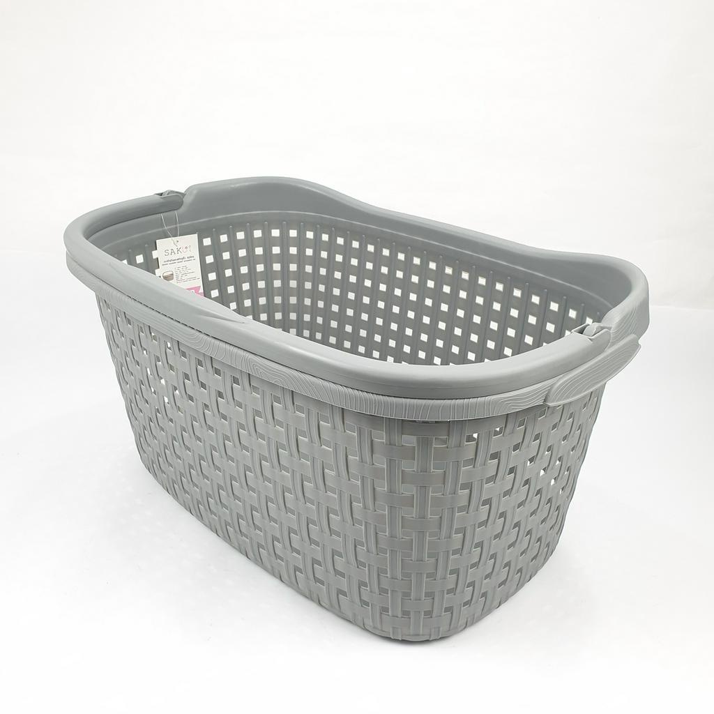 GlobalHouse SAKU ตะกร้าผ้าพลาสติกหูหิ้ว 42ลิตร ขนาด60x40x27ซม. รุ่น TG51900 สีเทา สินค้าของแท้คุณภาพดี