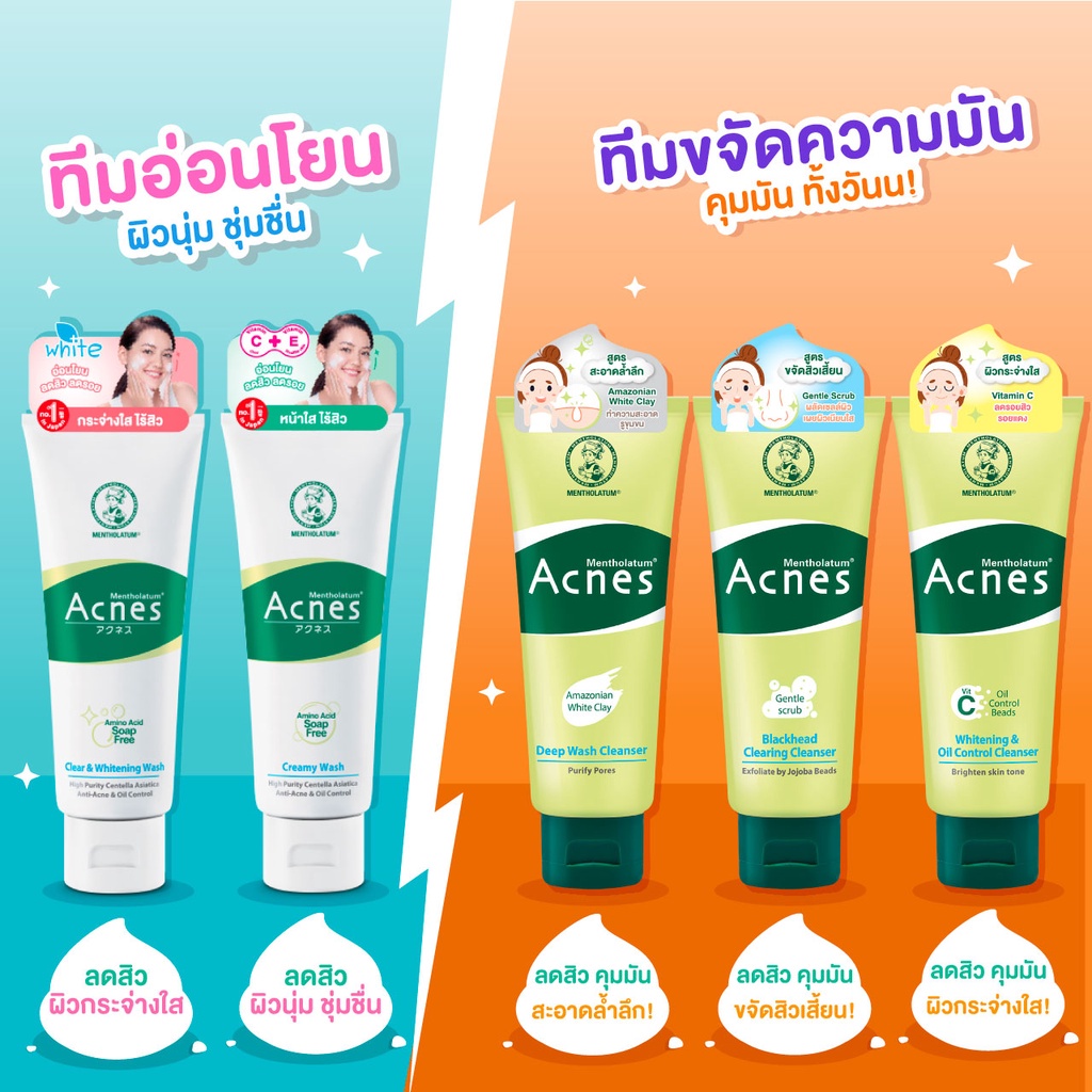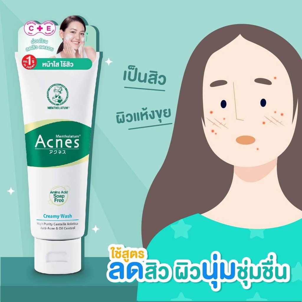 โฟมล้างหน้า Mentholatum Acnes 50 หรือ 100 กรัม Creamy wash Clear&Whitening Wash Mentholatum Acne เมนโทลาทั่ม เมนโทลาทัม