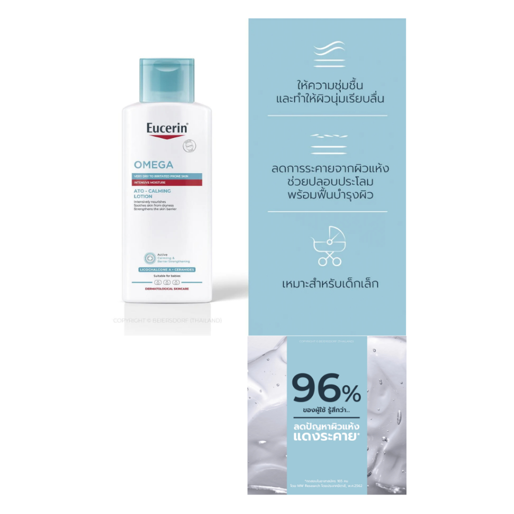 Eucerin Omega Soothing Lotion.250 ml +Tester ฉลากไทย มีอย.ผู้ที่มีผิวแห้ง คัน ผื่นแพ้**ไม่มีกล่อง