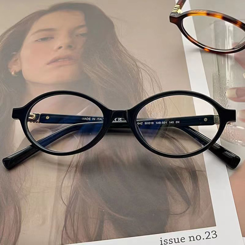 แว่นตาทรงวงรีคลาสสิกสำหรับผู้หญิง กรอบพิมพ์ลายสัตว์เล็กๆ
