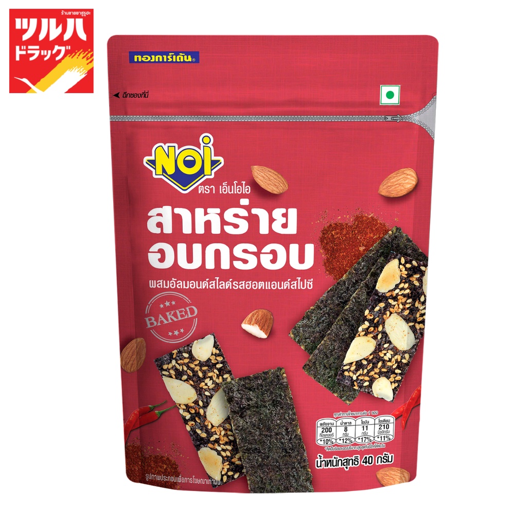 เอ็นโอไอ สาหร่ายอบกรอบผสมอัลมอนด์สไลด์รสฮอตแอนด์สไปซี่ 40 กรัม/NOI CRISPY SEAWEED ALMOND SLICES SPICY 40 GR.