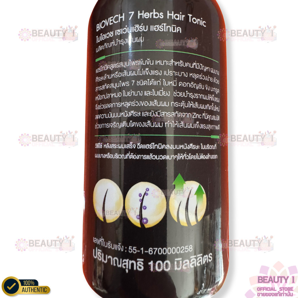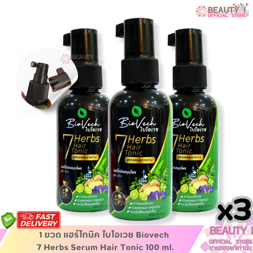 โปร 3 ขวด เซรั่มบำรุงผม ไบโอเวช Biovech 7 Herbs Serum Hair Tonic 100 ml.
