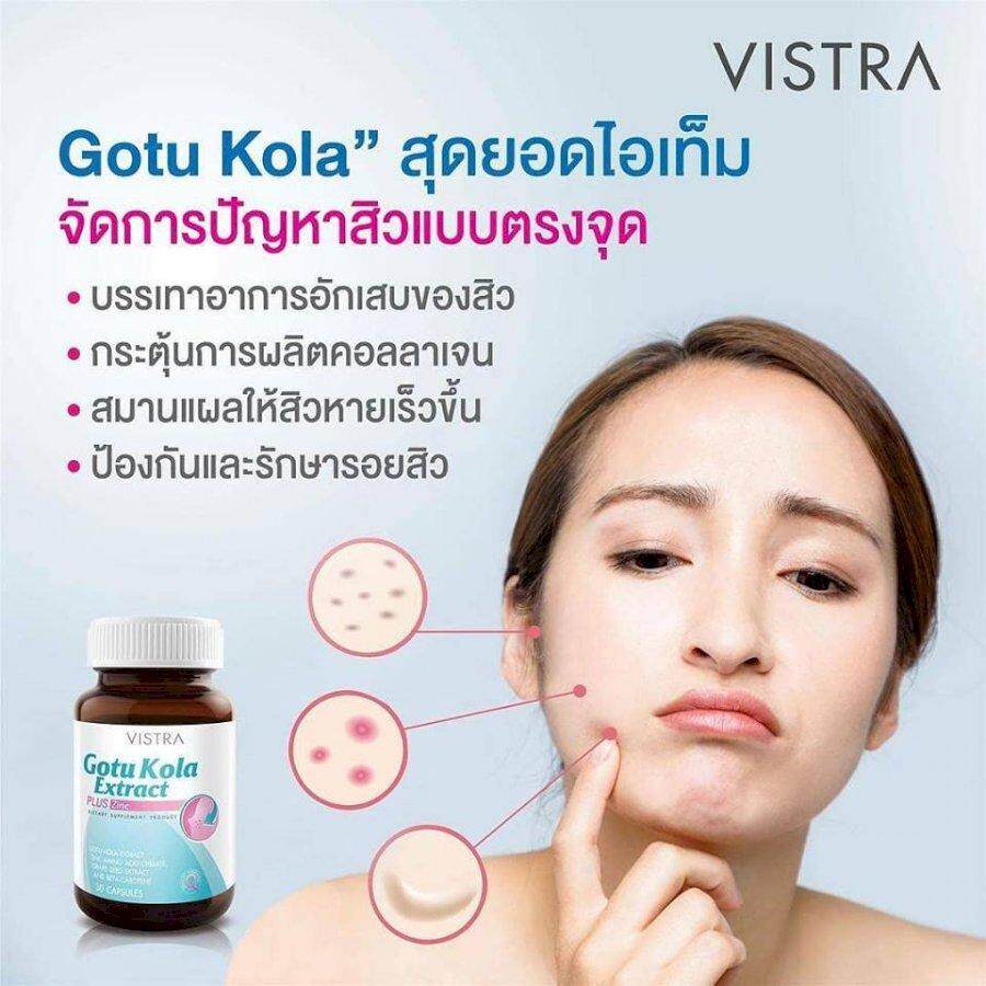 Vistra Gotu Kola Extract Plus Zinc / Kiwi Extract วิสทร้า โกตู โคล่า เอ็กแทร็ค พลัส ซิงค์ [โกตู/กีวี่] [30 เม็ด/กระปุก]