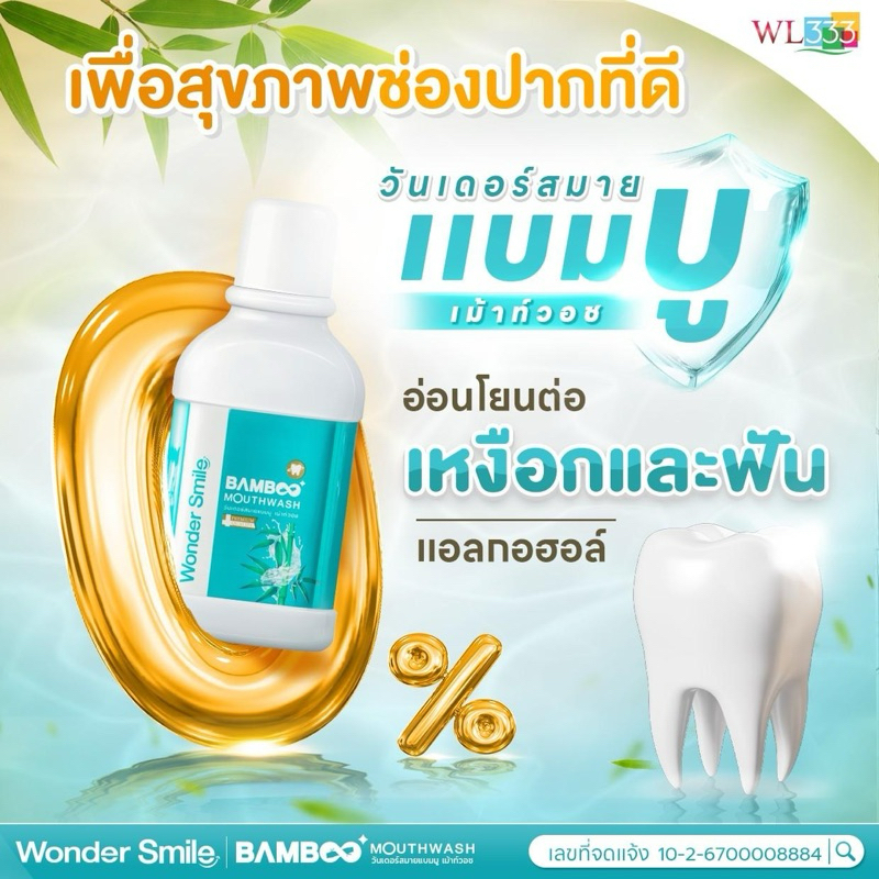 Wonder Smile Bamboo Mouthwash น้ำยาบ้วนปาก วันเดอร์ สไมล์ สุขภาพช่องปาก ลดกลิ่นปาก จัดฟัน