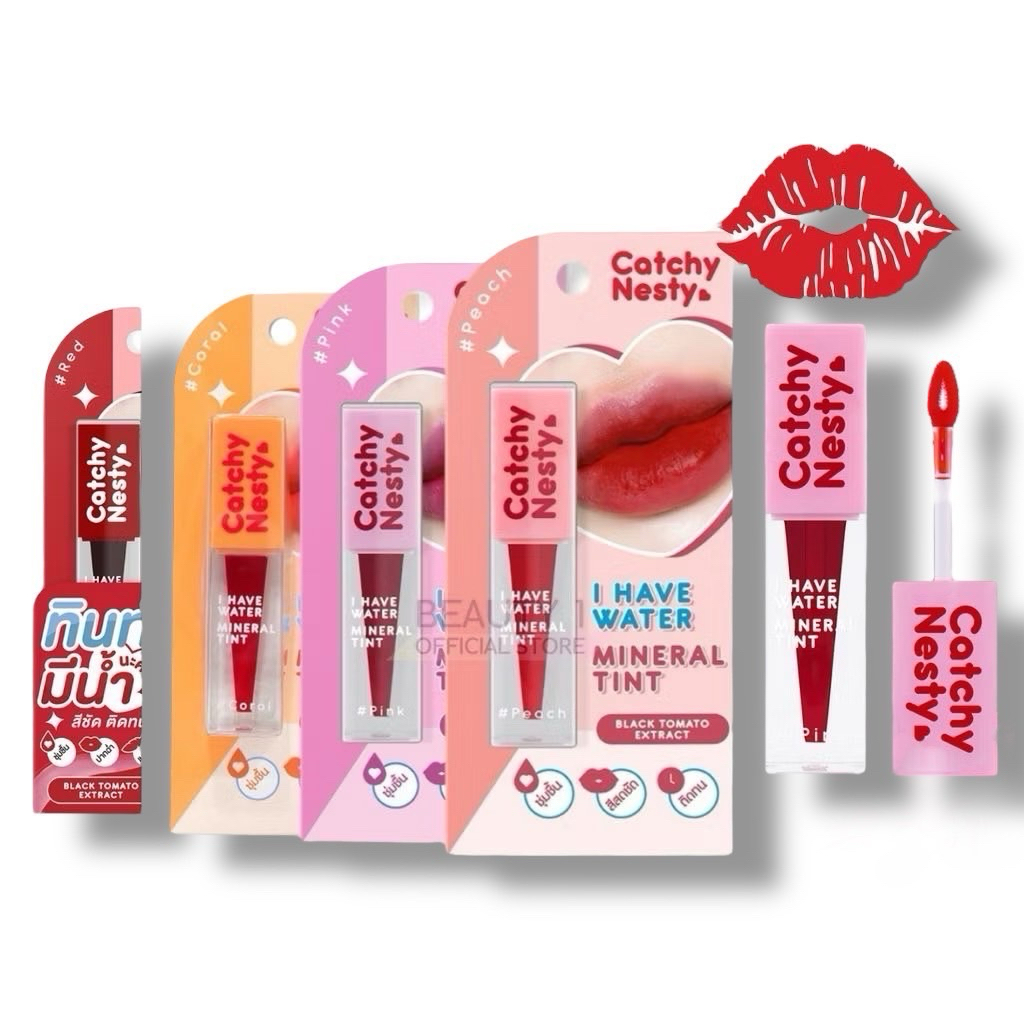 Cathy Nesty ลิปทินท์น้ำ สีสด ฉ่ำ ปากชุ่มชื่น สีสดชัดติดทนนาน 3g.