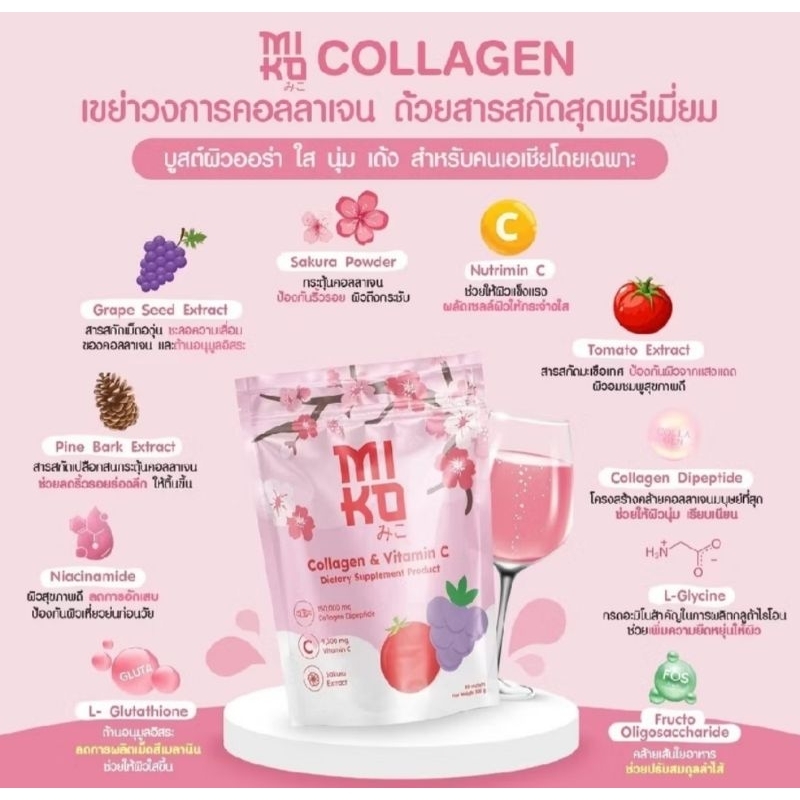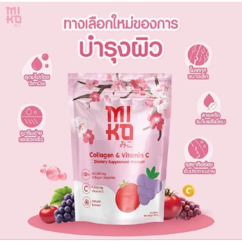 ส่งฟรี/มีไลฟ์ มิโกะ คอลลาเจน Miko Collagen & Vitamin C (1 ห่อ มี 30ซอง)