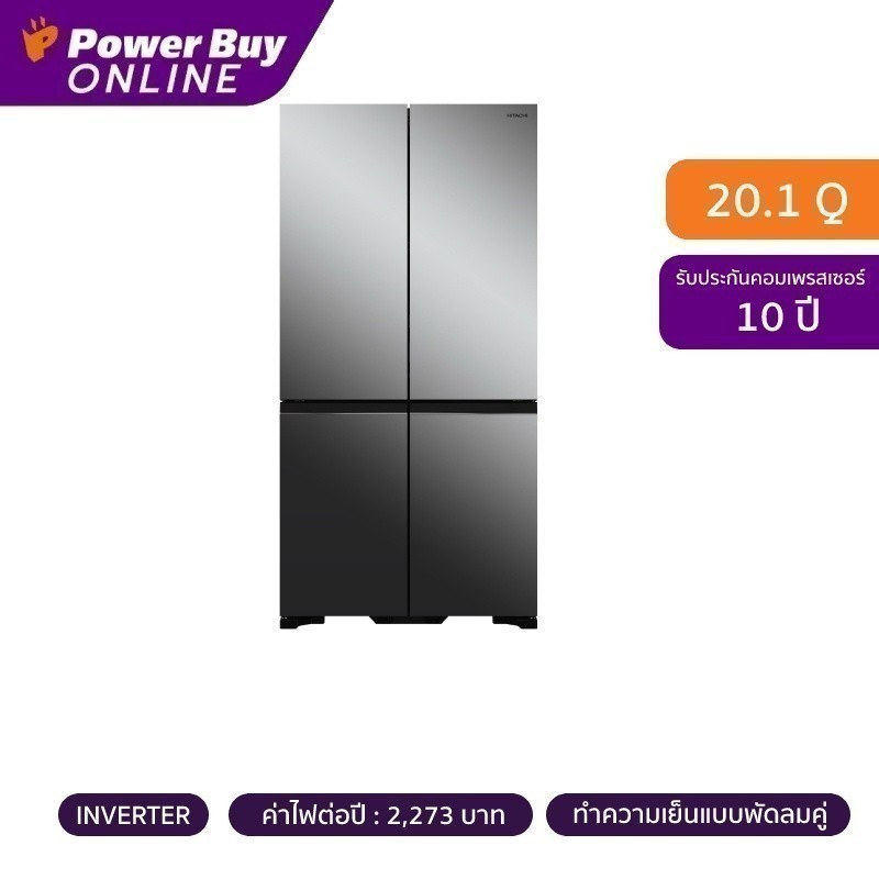 HITACHI ตู้เย็น 4 ประตู (20.1 คิว, สี Mirror) รุ่น RWB640VFX MIR