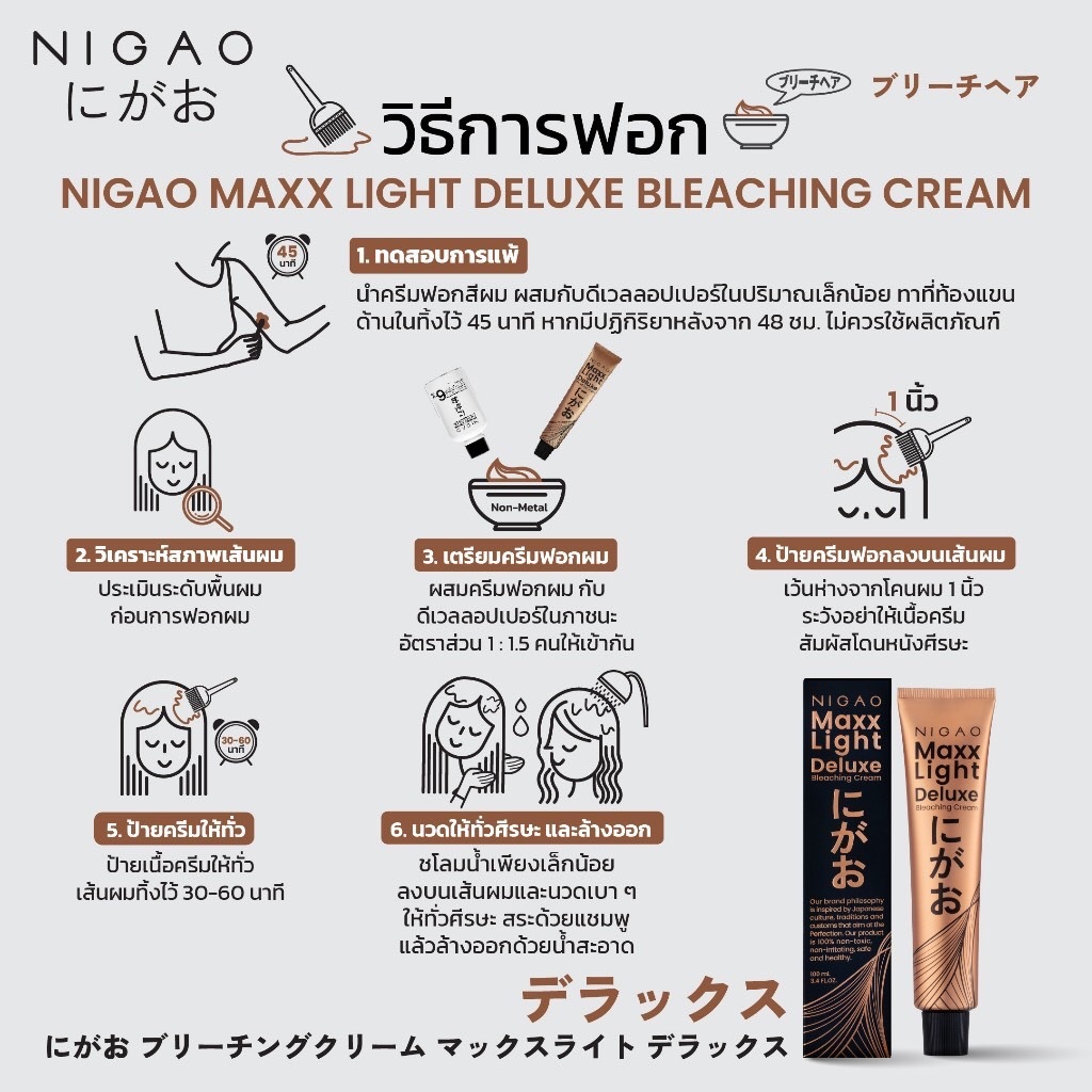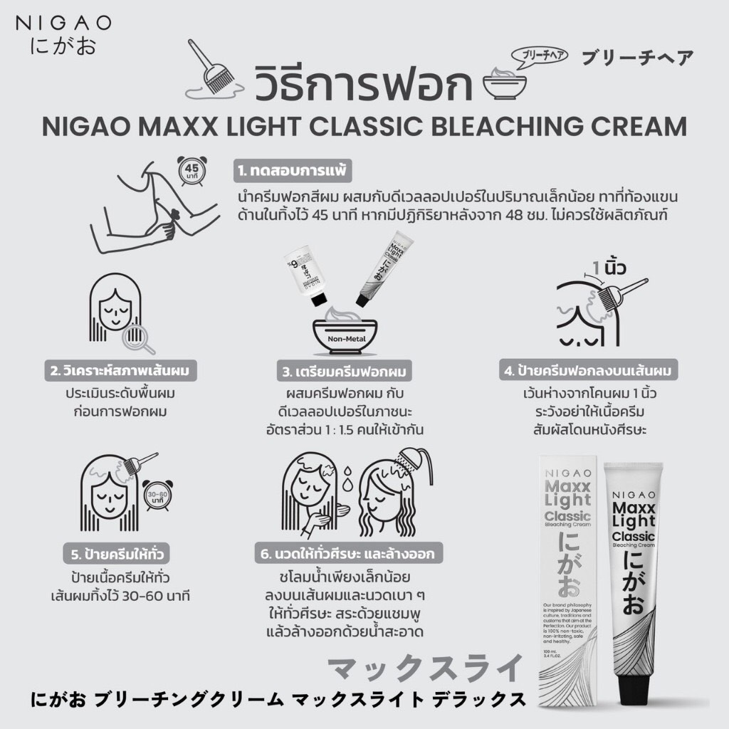 Nigao Maxx Light Classic/Deluxe/Royale Bleaching Cream 100 ml.ครีมฟอก นิกาโอะ แม็กซ์ ไลท์ บลีชชิ่ง