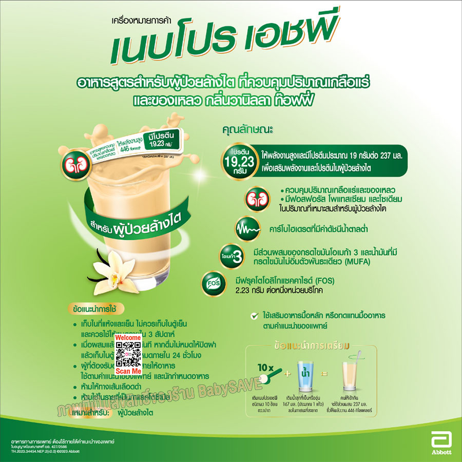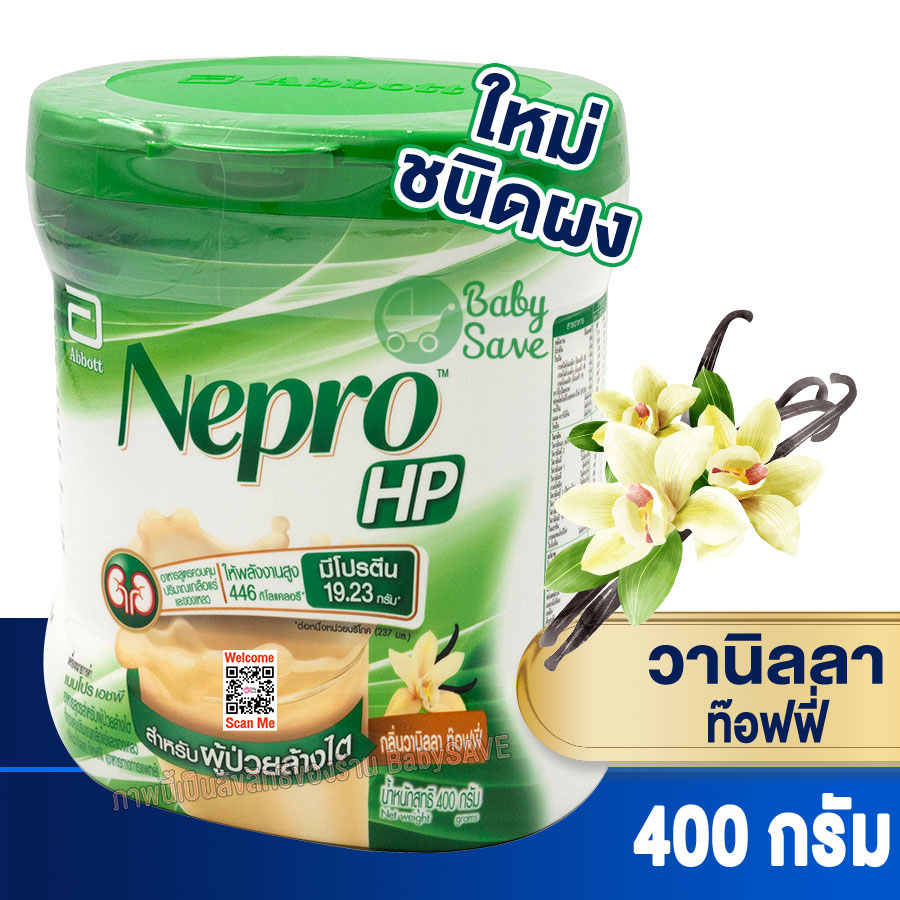 Nepro เนบโปร เอชพี ชนิดผง วานิลลา 400 กรัม Nepro HP Powder Vanilla 400g. สำหรับผู้ป่วยล้างไต