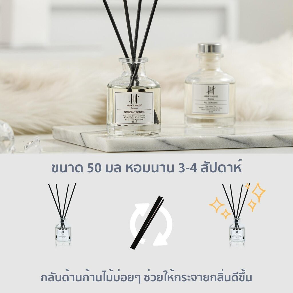 ขายดี ✅ ก้านไม้หอม Hanky Reed Diffuser ก้านน้ำหอม น้ำหอมอโรม่า น้ำมันหอมระเหย ก้านหอม 50 ml