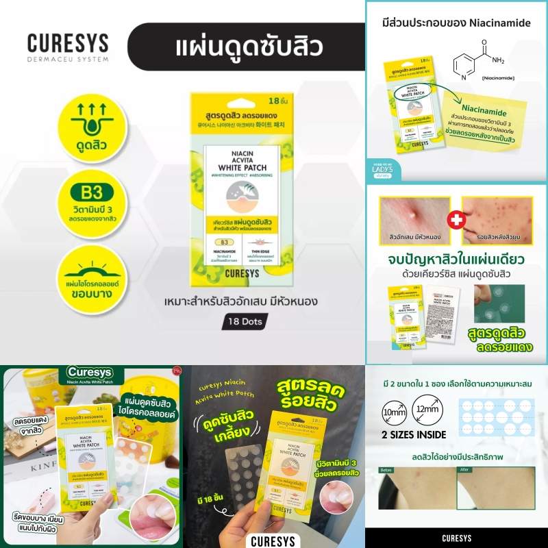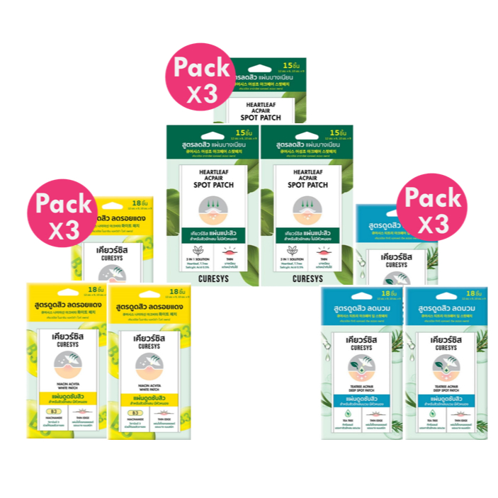 โปรโมชั่น 3 ชิ้น CURESYS เคียวร์ซิส Heartleaf Acpair Spot Patch ac clear gel แผ่นแปะสิว ดูดซับสิว เจล เจลแต้มสิว