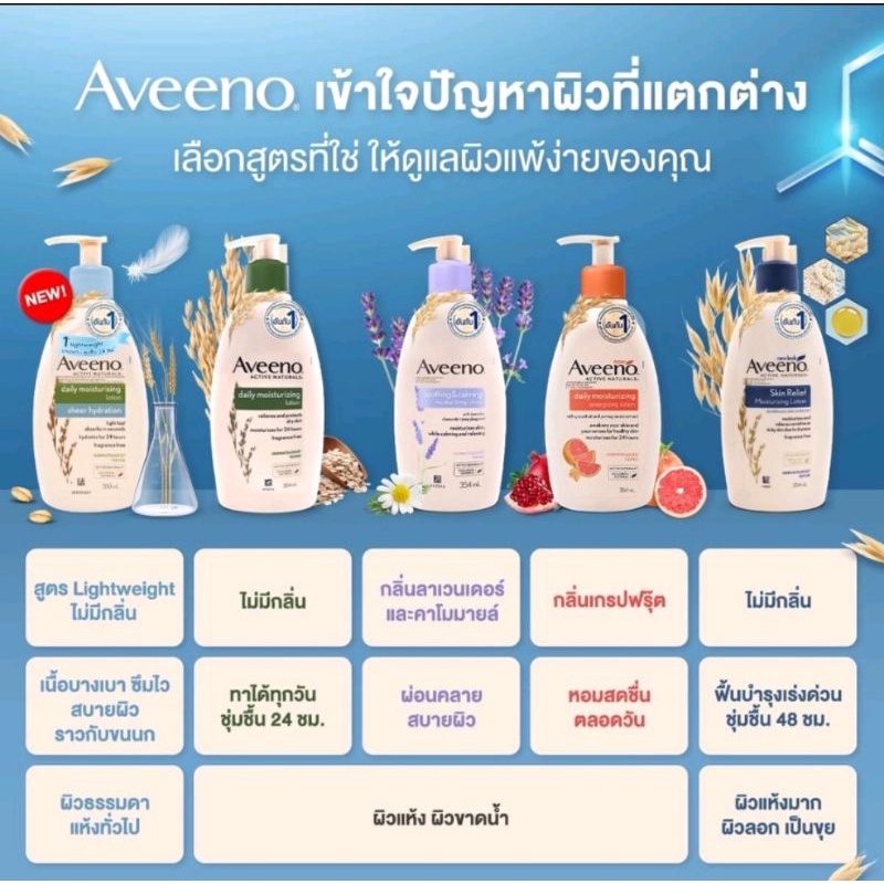 Aveeno Active Naturals Lotion (350ml./354ml.) อาวีโน่ มอยส์เจอร์ไรซิ่งโลชั่นบำรุงผิวกาย มีช้อยส์ให้เลือก