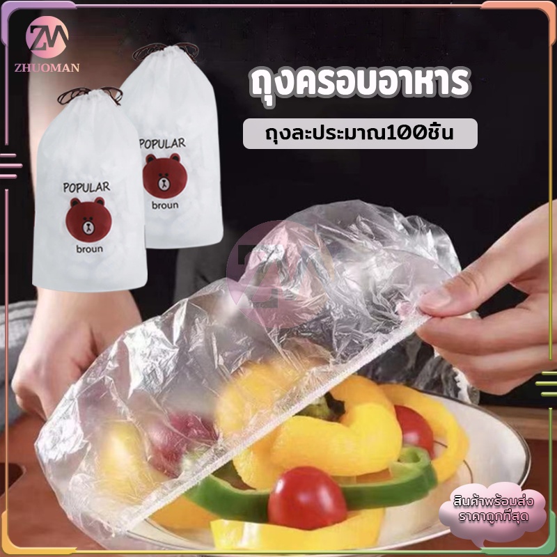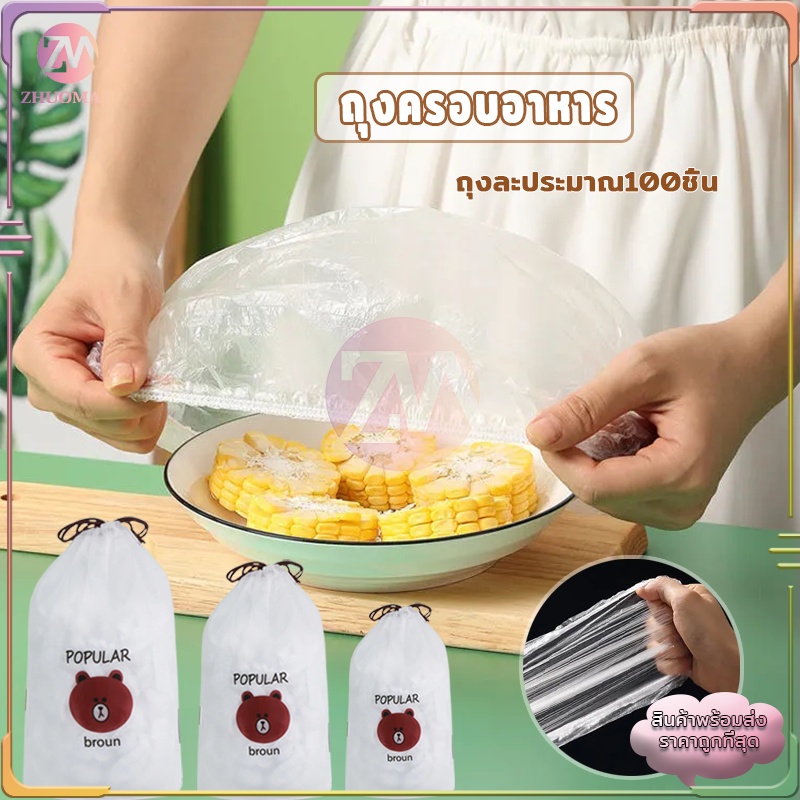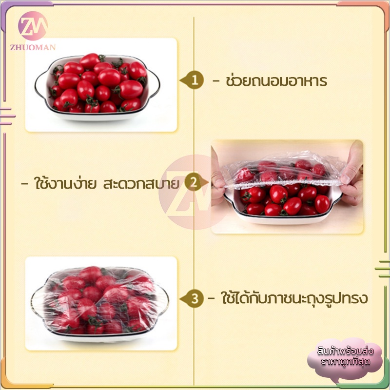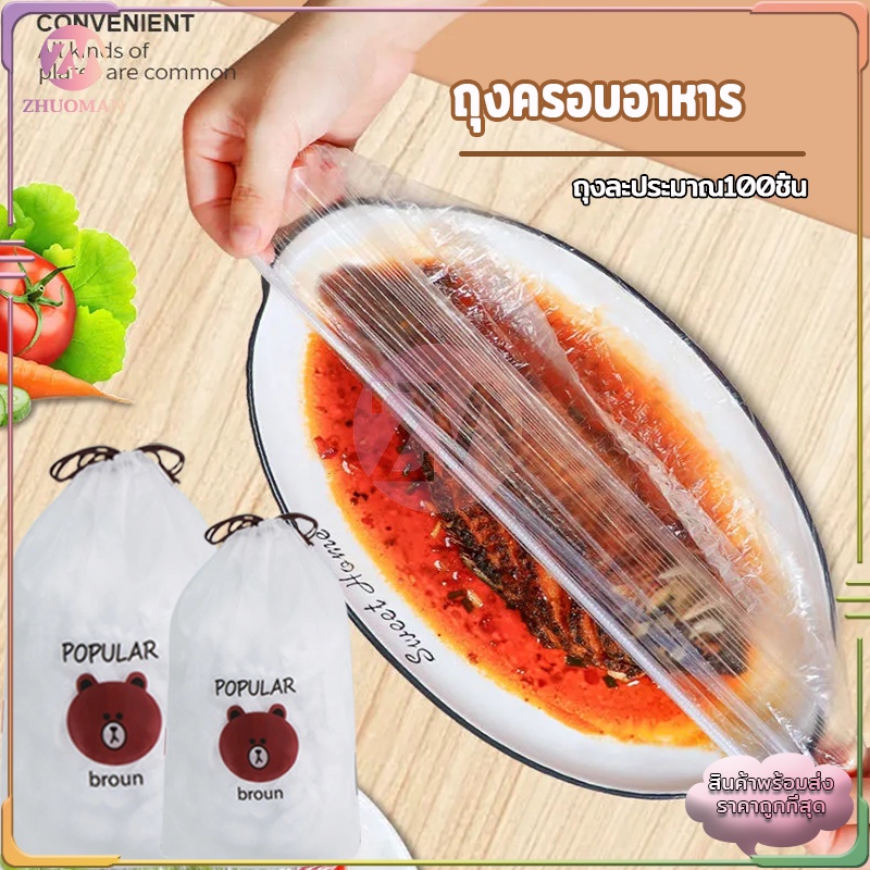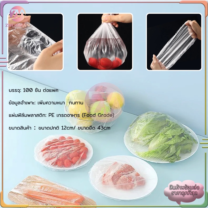 ฟิล์มห่ออาหาร 100 ชิ้น/ถุง แรปห่ออาหาร ถนอมอาหาร หมวกอาบน้ำ ฟิล์มถนอมอาหาร พลาสติกห่ออาหาร กันกลิ่นอาหารในตู้เย็น