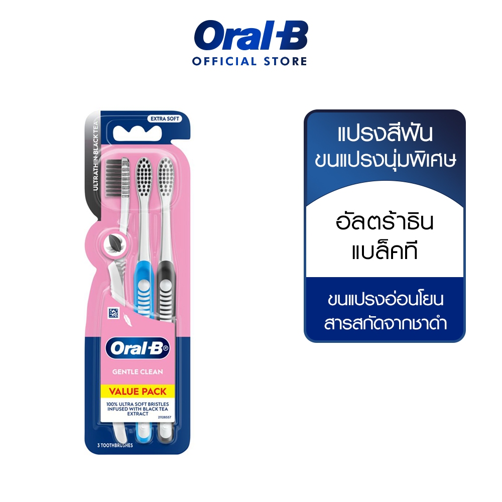 Oral-B ออรัลบี แปรงสีฟัน ขนแปรงนุ่ม ผสมสารสกัดจากชาดำ 3 ด้าม คละสี