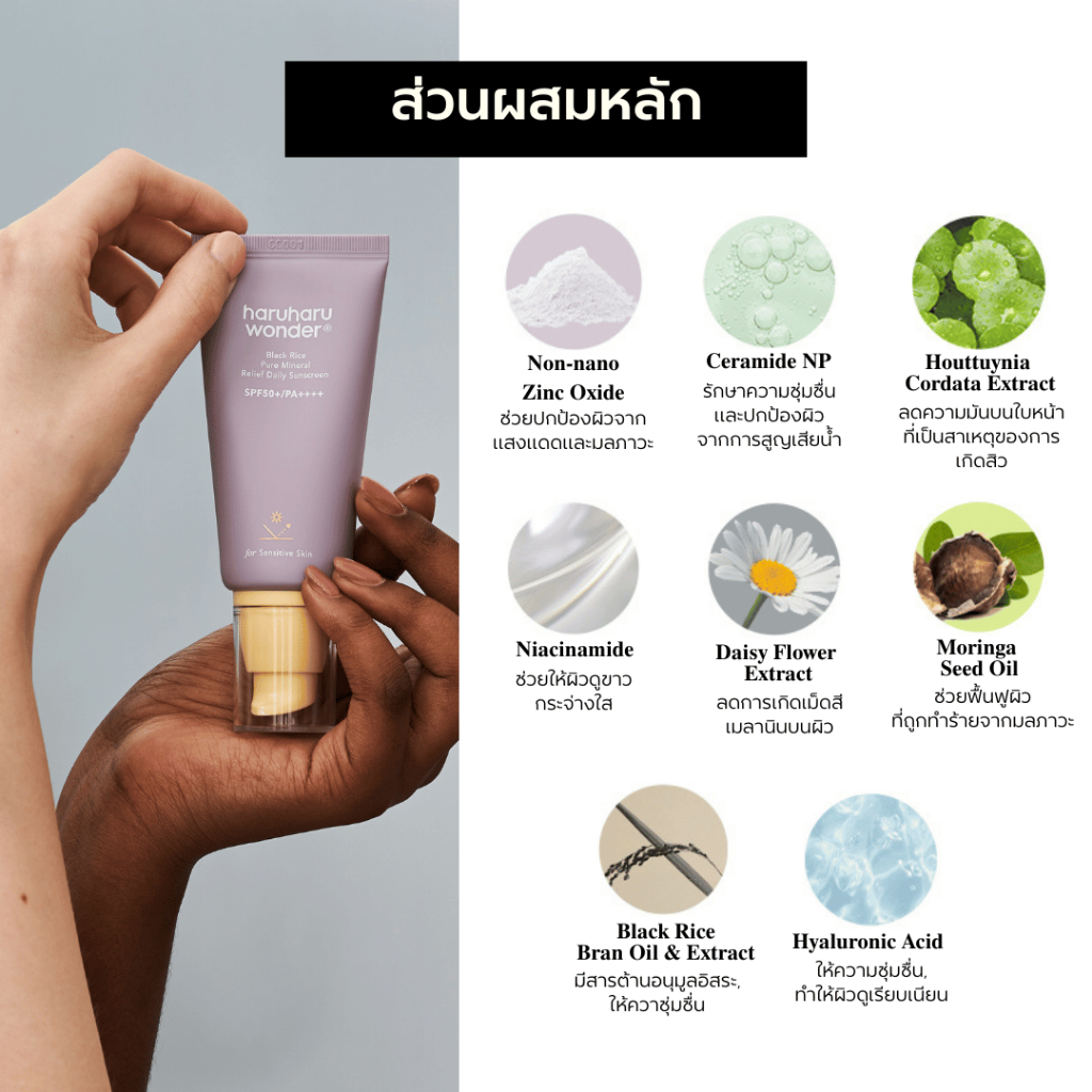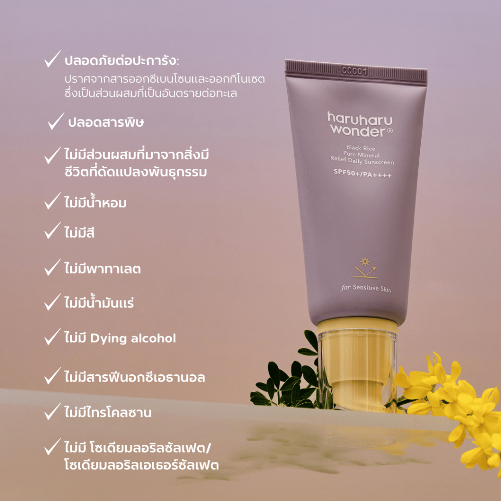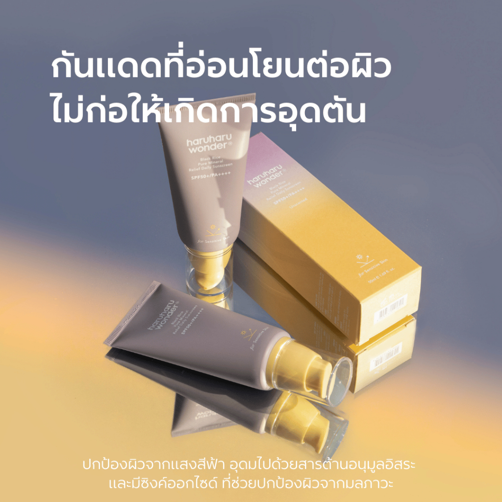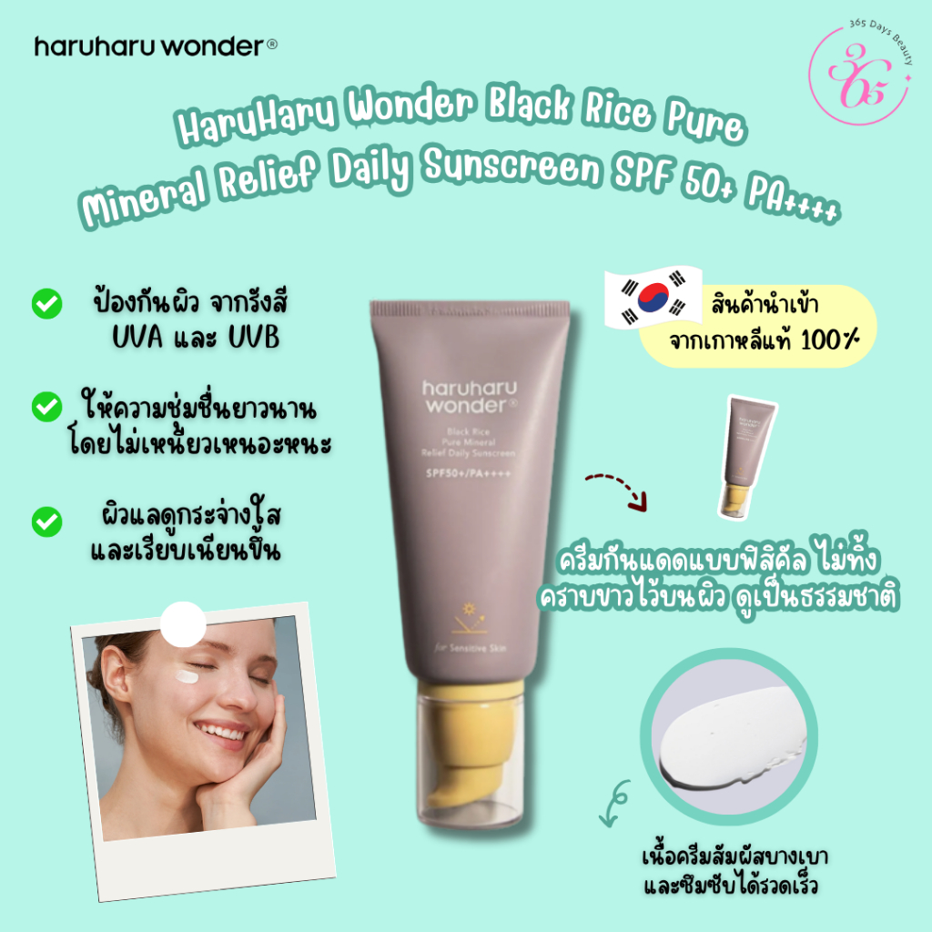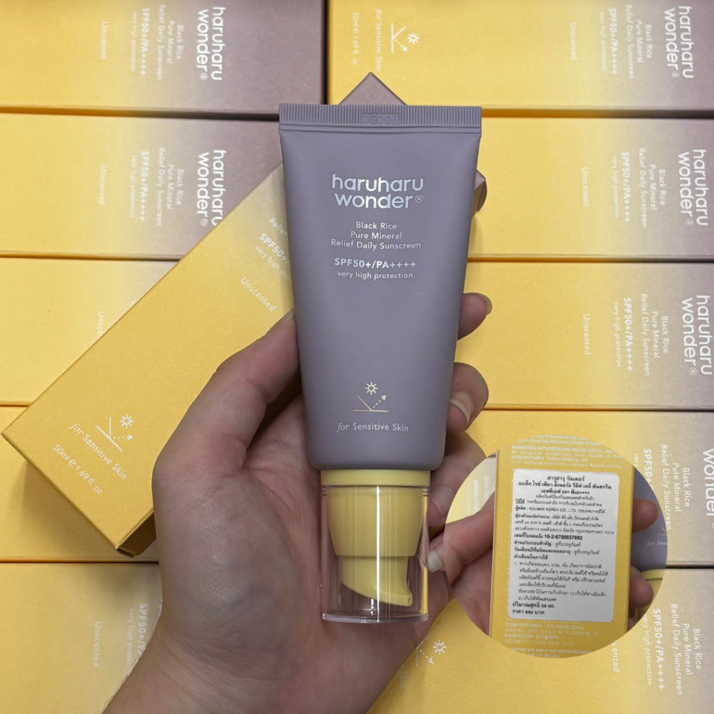 ✅ของแท้/พร้อมส่ง🚚💨 haruharu wonder Black Rice Pure Mineral Relief Daily Sunscreen SPF50+ PA++++ 50ml (สีม่วง)