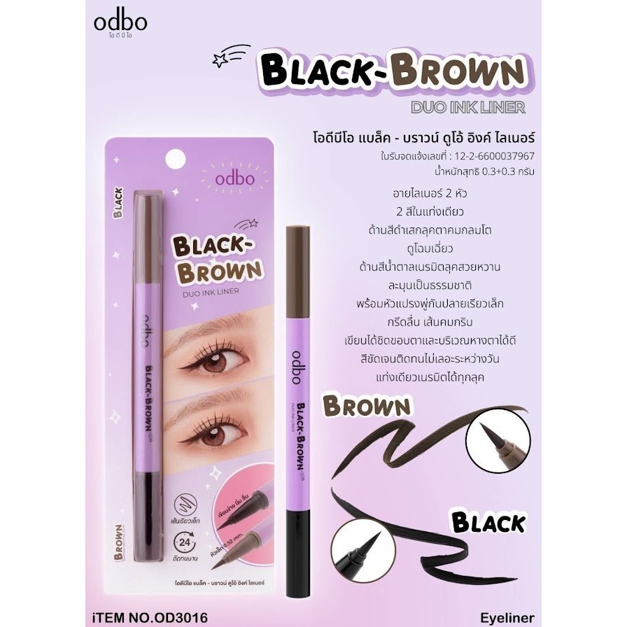 ♦️ของแท้·ส่งด่วน·ถูก♦️Odbo Black Brown Duo Ink Liner #OD3016 โอดีบีโอ แบล็ค บราวน์ ดูโอ้ อิงค์ ไลเนอร์ x 1 ชิ้น dayse