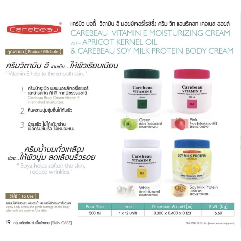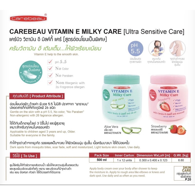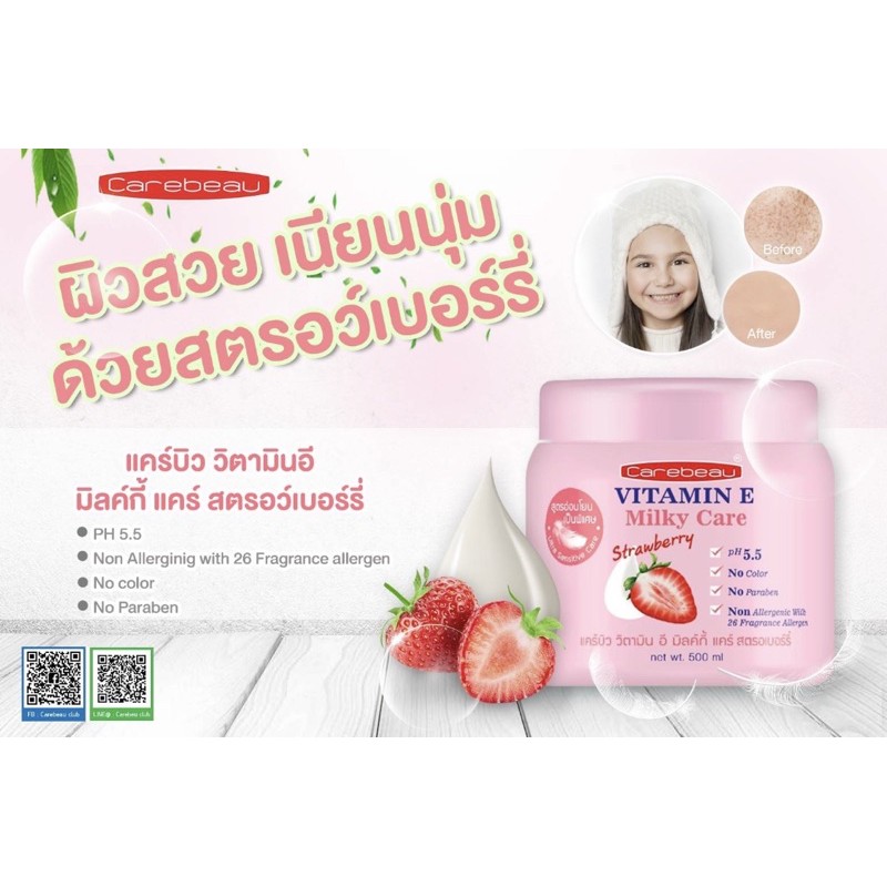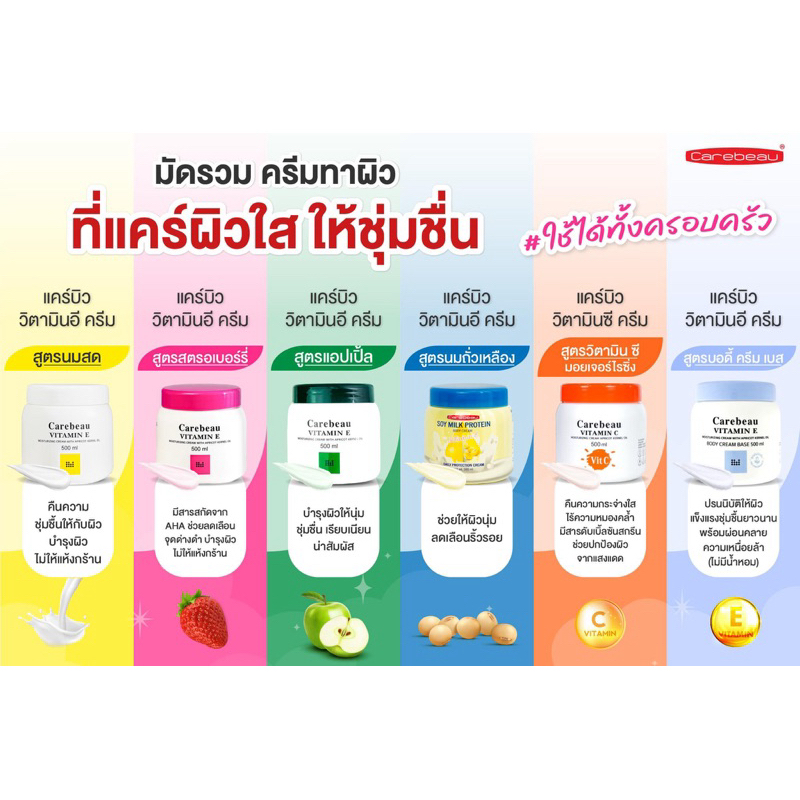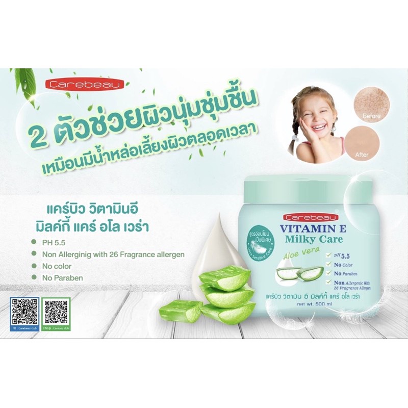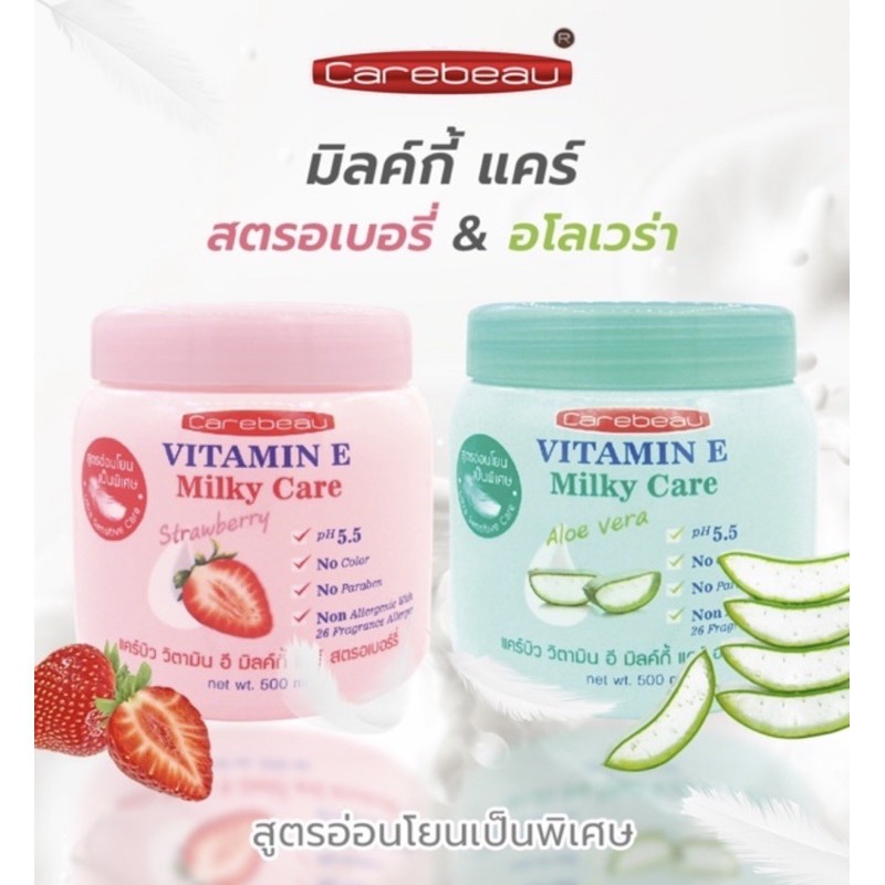 แคร์บิว วิตามินอี/มิลค์กี้ บอดี้ครีม 500 มล Carebeau Vitamin E/Milky Body Cream 1กระปุก