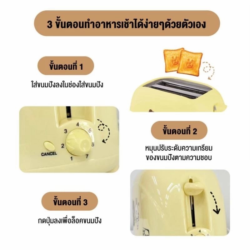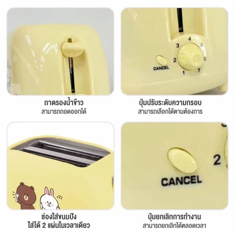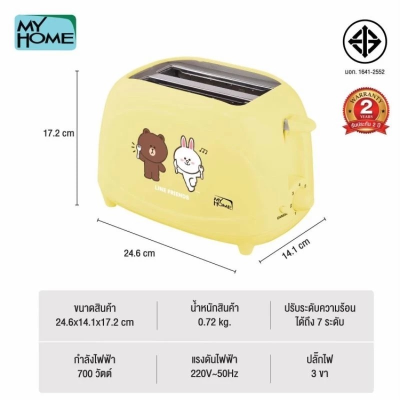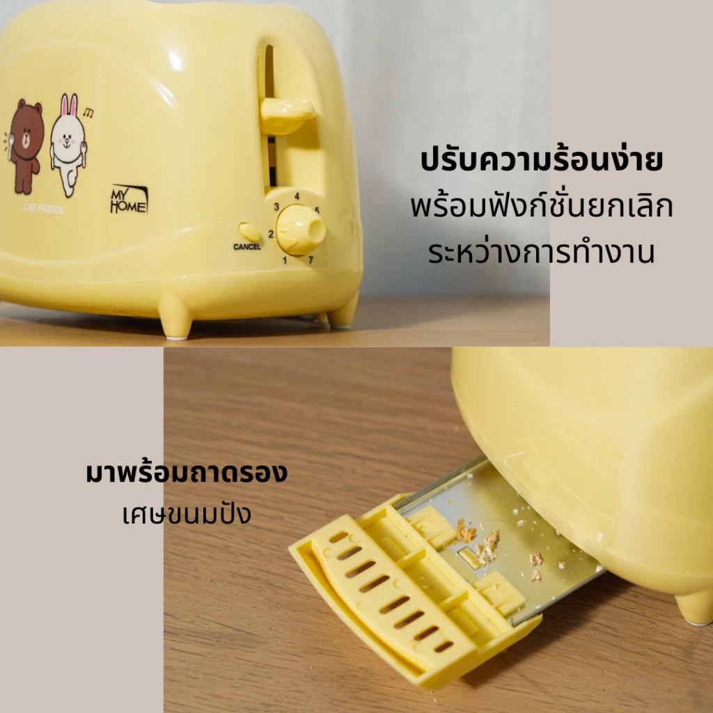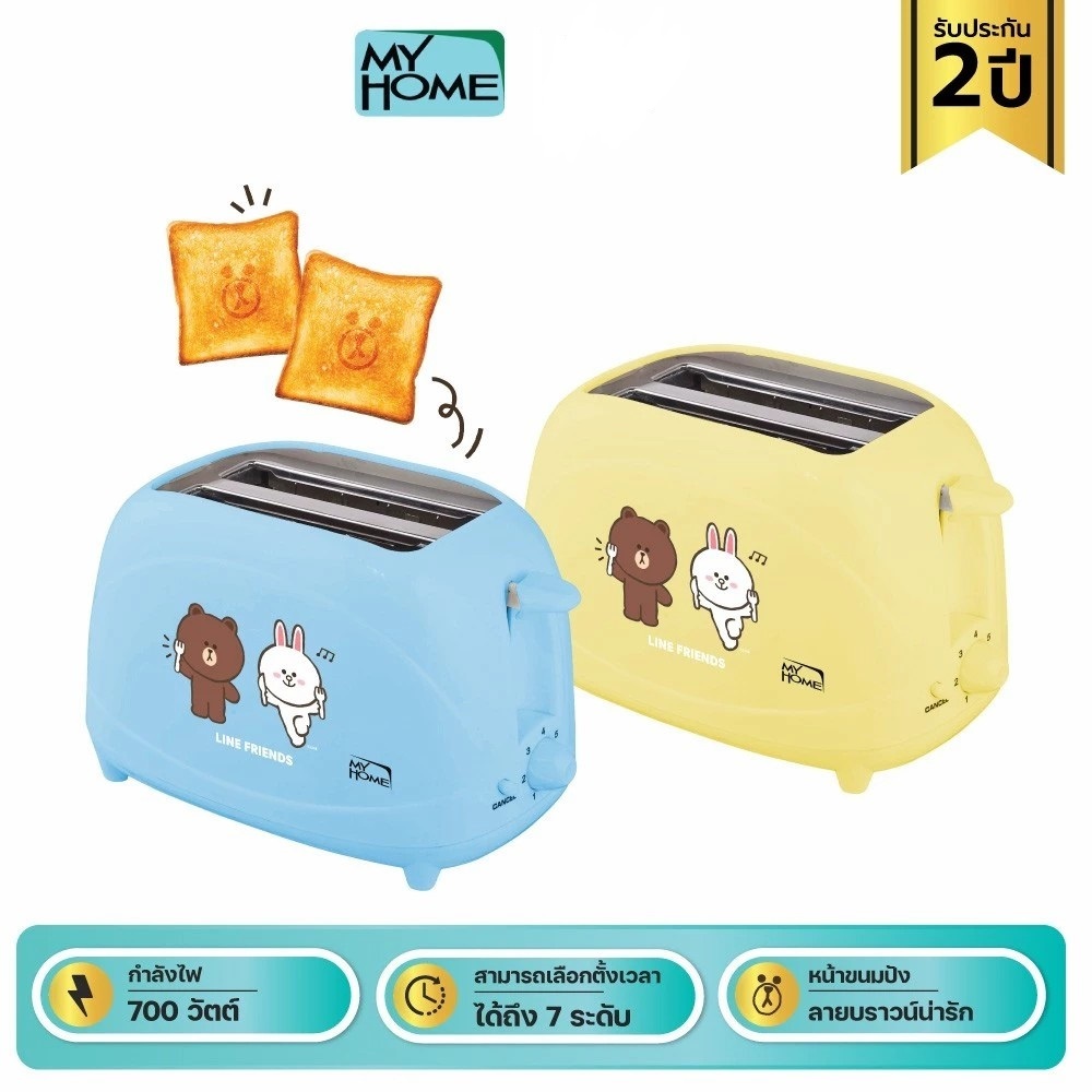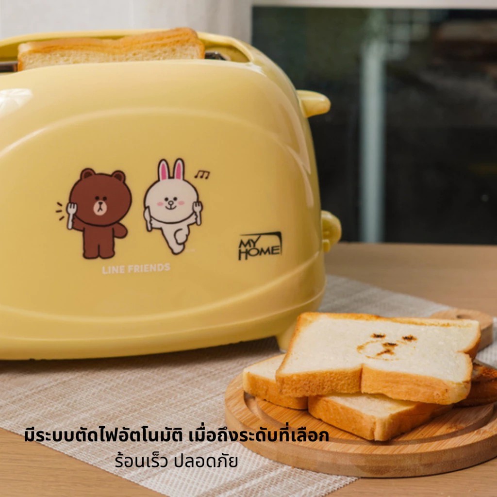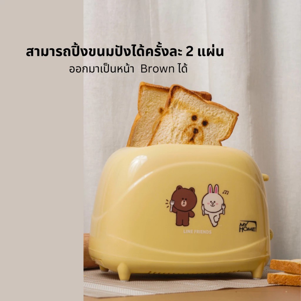 MYHOME เครื่องปิ้งขนมปัง LINE FRIENDS รุ่น TL-123 ปิ้งขนมปังเป็นหน้า Brownได้ มีให้เลือก 2สี