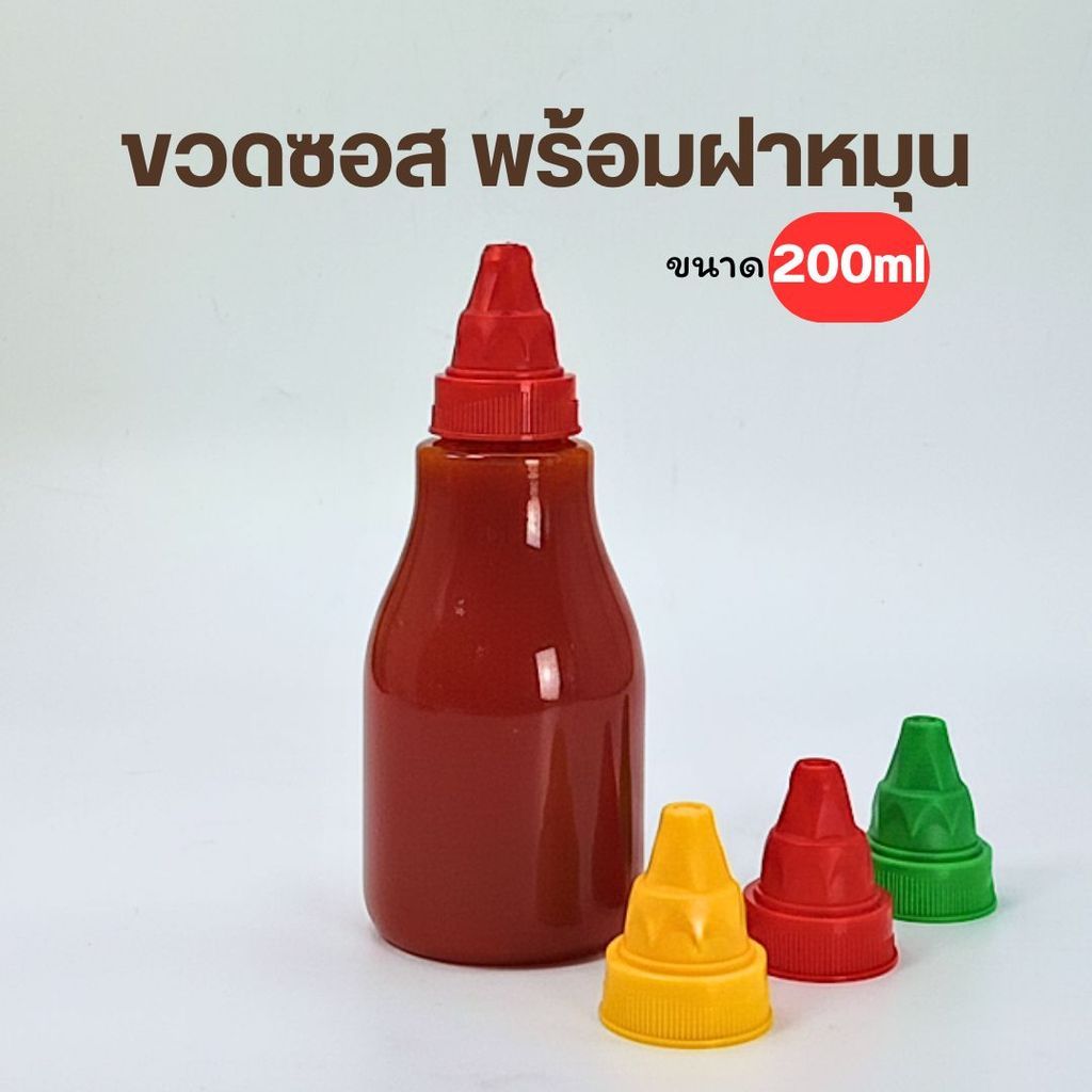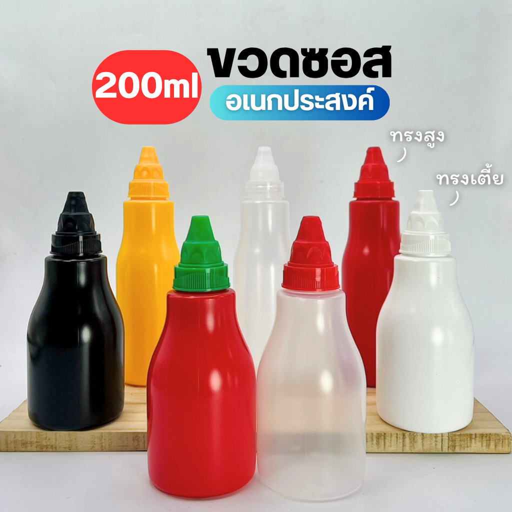 ขวดซอส PP ขวดน้ำจิ้ม ขวดบีบซอส ฝาซอส ทรงเตี้ย/สูง ไหล่มน 200ml