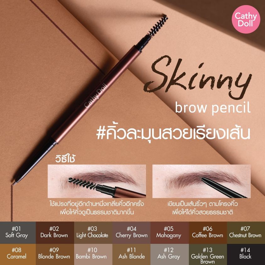 รุ่นเดิม【Skinny】ดินสอเขียนคิ้ว【หัวเล็กวาดเส้นคิ้วง่าย】Cathy Doll Skinny Brow Pencil 0.03g