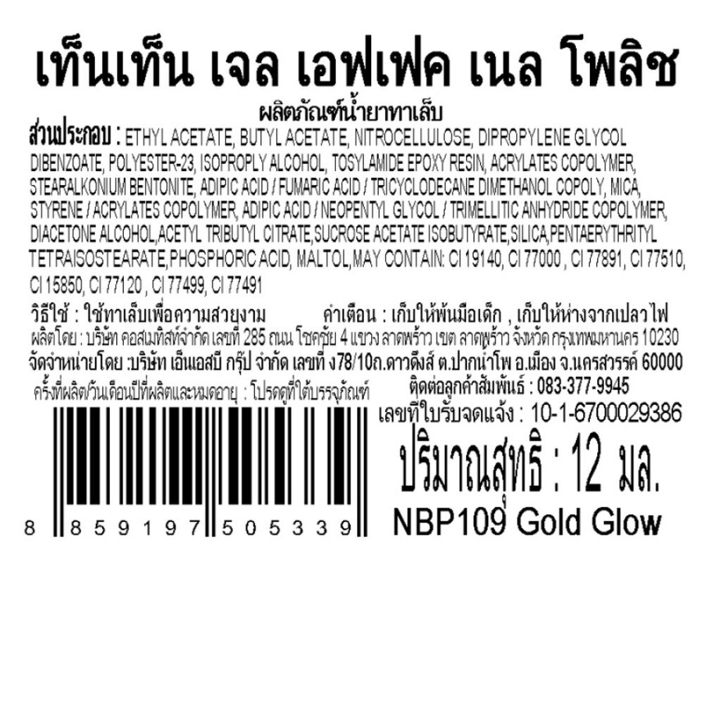 Ten Ten เท็น เท็น น้ำยาทาเล็บ เจล เอฟเฟค 12มล. NBP109 โกลด์โกลว์