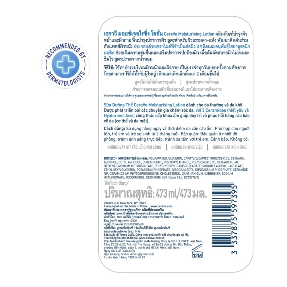 CERAVE Moisturising Lotion 473 ml เซราวี มอยเจอร์ไรซิ่ง โลชั่น 473 มล.