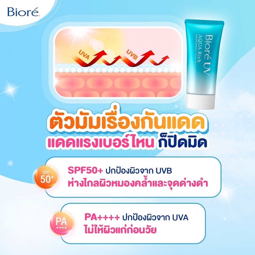 Biore UV Aqua Rich Watery Essence SPF50+ PA++++ 85g บิโอเร ยูวี อะควา ริช วอเตอร์รี่ เอสเซ้นส์ SPF50+ PA++++ 85ก.
