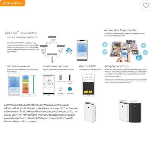 พร้อมส่ง ยับยั้งไวรัส กำจัดไวรัสด้วยไอออน เครื่องฟอกอากาศ SHARP KI-N50TA-W 38 ตารางเมตร