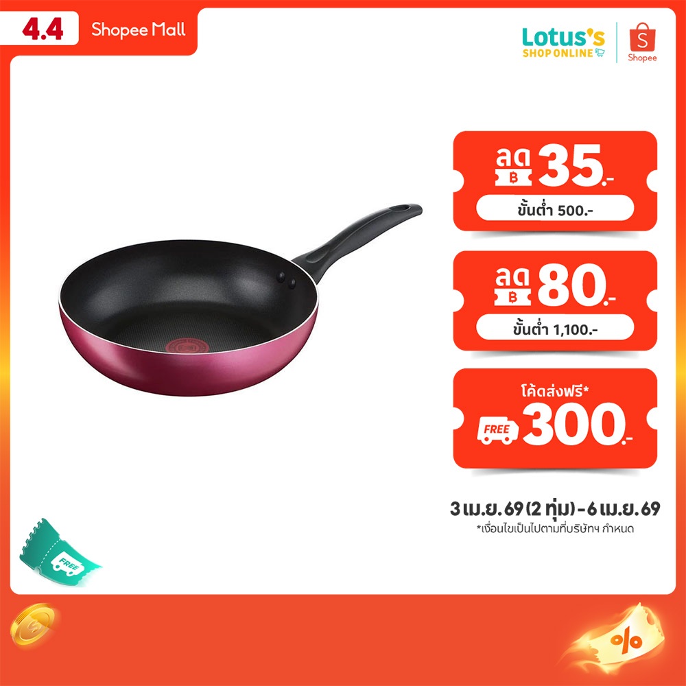 ทีฟาล์ว กระทะก้นแบนไลแอนคลีน 26 ซม. รุ่น B2240596 สีแดง TEFAL FP LIGHT+CLEAN 26 CM. #B2240595 RED