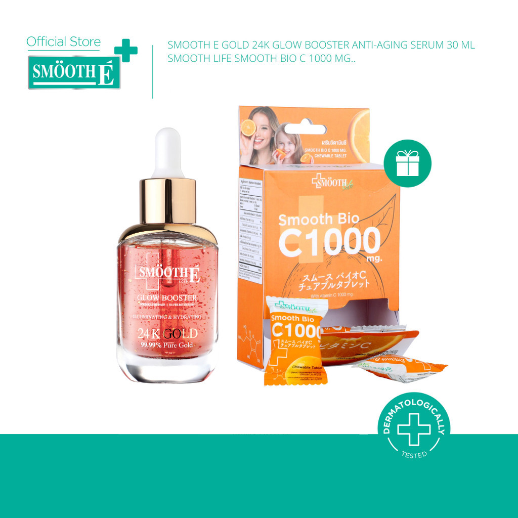 [1 ฟรี 1 Vit C] Smooth E Gold 24k Glow Booster Anti-Aging Serum 30ml ลดเลือนริ้วรอยร่องลึก 10ปี ลดฝ้าแดดสะสมใน 2 สัปดาห์